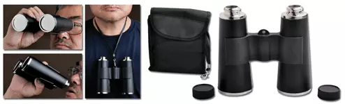 Tired of spending way too much money on cocktails when your at the ball game? When your out on the town drinks can get really pricey! The average mixed drink at a sporting event costs $12; You can make that same drink at home for less then $2. Don’t get ripped off by the high cost of alcohol at concerts or sporting events any more! This double sided binocular flask has been specially designed to fly under the radar of stadium security so you can pour your own drinks once your in. This flask appears to be nothing more then a pair of binoculars when worn around your neck so nobody would ever suspect it is holding liquor! The Binocular flask in constructed of premium grade stainless steel for durability, cleanliness and beauty. This binocular flask is finished in brilliant polished chrome and is accented with black leather trim so they really appear to be nothing more then a pair of stylish, high end binoculars. This gift set comes complete with everything you need including 1 chrome finished binocular flask; independently double sided so you can hold 12 oz (6 oz in each side) of 2 kinds of alcohol all in one great flask. The gift set also comes complete with a stainless steel funnel to fill the flask and a convenient neck strap so you can wear the flask just like a real pair of binoculars. This Gift set comes complete in a beautifully appointed gift pouch. Giving this flask as a gift is as easy as order, receive and wrap.