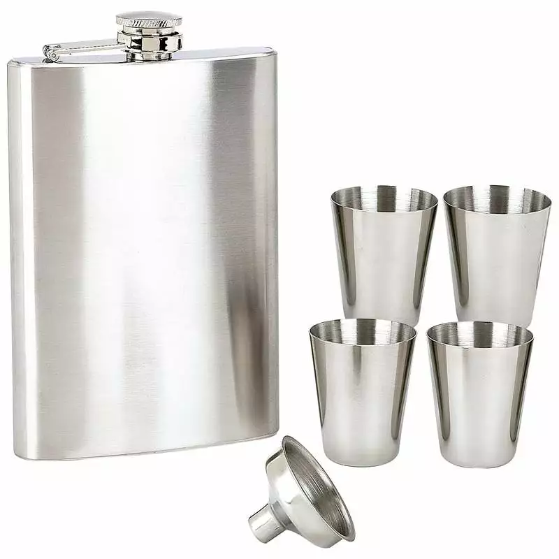 Bewild 8 Ounce Flask With Shot Glasses And Funnel Flasks