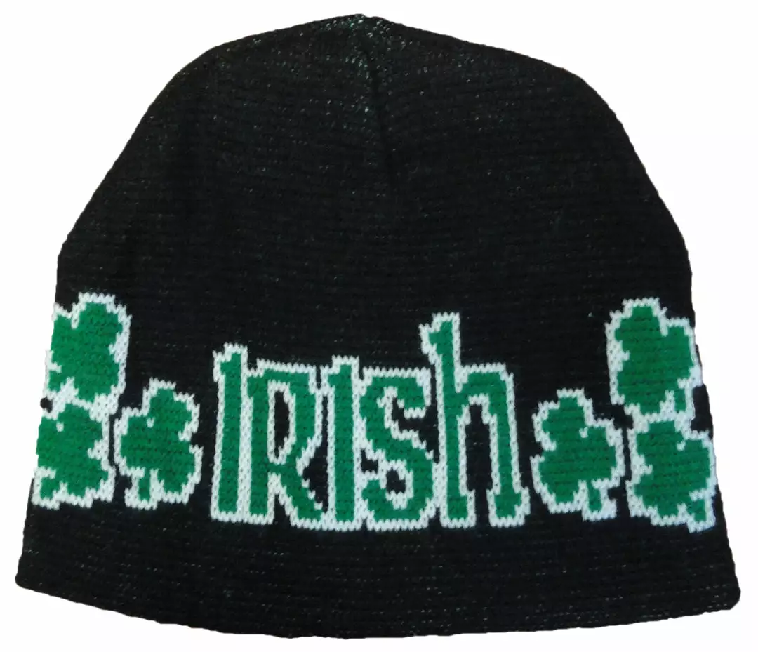 Soft beanies will keep you protected from the elements in simplicity. Constructed out of 1 panel of fine, tight, rib knit to give this hat extreme stretch and flexibility, this skull cap has no seams running down the round crown to ensure a slim, uninterrupted fit. Its generous length adds versatility to this hat. Its elasticity allows this hat to securely and comfortably top a child’s head as well as any adult head size. Lightweight, this functional beanie will see you from fall to the end of winter with ease. This Beanie features a green text saying “IRISH” and two groups of green shamrocks on the front. Perfect for St. Patrick’s Day.