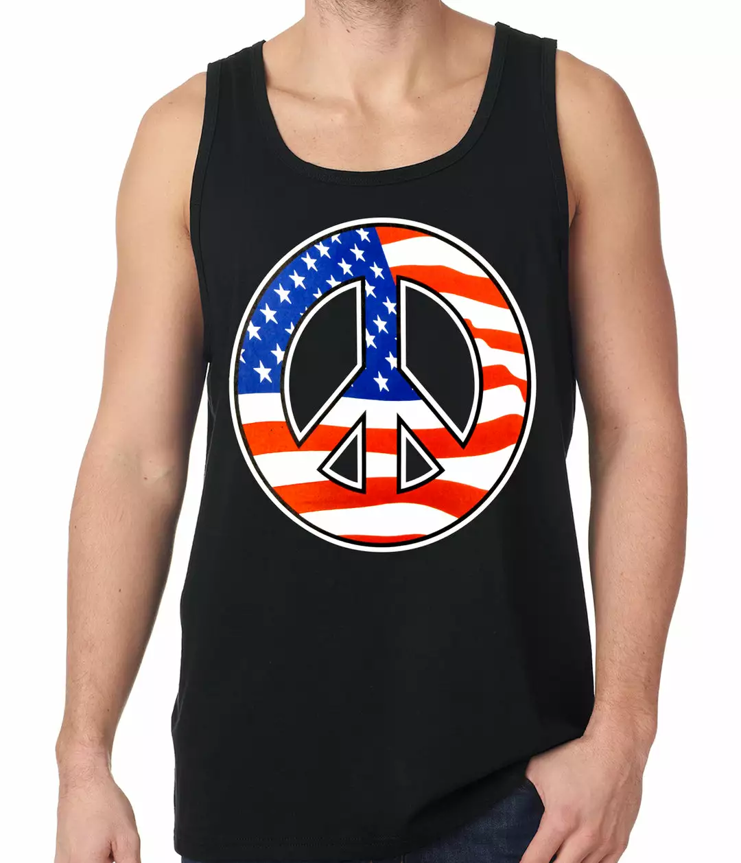 Get your hands on this amazing American Flag Peace Sign Top. All of our American Flag Peace Sign Tops have a classic, comfortable fit as well as being pre-shrunk, so you can expect little to no shrinkage.Â