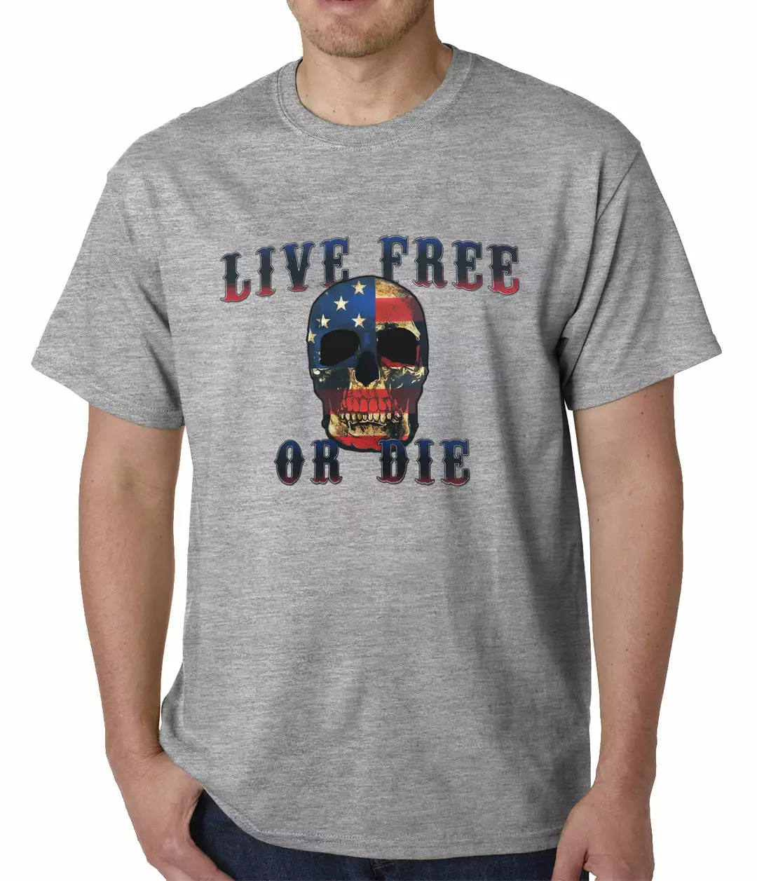 Get your hands on this amazing American Flag Skull – Live Free or Die Top. All of our American Flag Skull – Live Free or Die Tops have a classic, comfortable fit as well as being pre-shrunk, so you can expect little to no shrinkage.