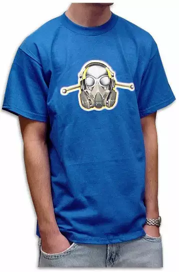 All Ghast t shirts are made of 100% super soft cotton and completely machine washable. This royal blue t-shirt has a picture of a head with a gas mask on the front.