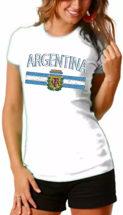 Argentina Vintage Flag International Girls T-Shirt. Show pride for your favorite Nation! Our collection of deluxe vintage international print t-shirts are the perfect way to support your home country. Each shirt features premium vintage style designs made to look distressed for that soft “Favorite Old T-shirt” look from day one. These shirts are perfect whether you are rooting for your favorite soccer nation or just showing your love for a special country. Bold athletic style writing spells out each country’s name curved above the country’s national shield; a classic design that is sure to display your patriotism! Each shirt is printed to order on a deluxe Cotton tee shirt in your choice of color.
