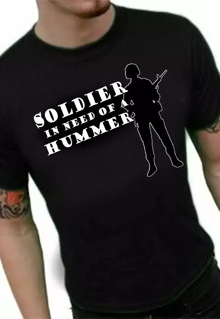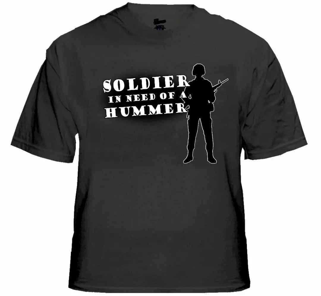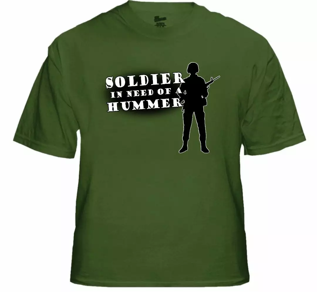 Army & Marine Shirts – Soldier In Need of a Hummer T-Shirt. The largest selection of funny and offensive novelty t-shirts are here! Our novelty t-shirts are funny and to the point and designed to look great and get the point across. Wear our selection of humorous joke shirts to a house party, school, the club or even just around the house. Each design has been hand selected by our team of humorist so you are sure to get all the laughs at your next event! Each design is printed on a comfy deluxe 100% cotton t-shirt in your choice of color.
