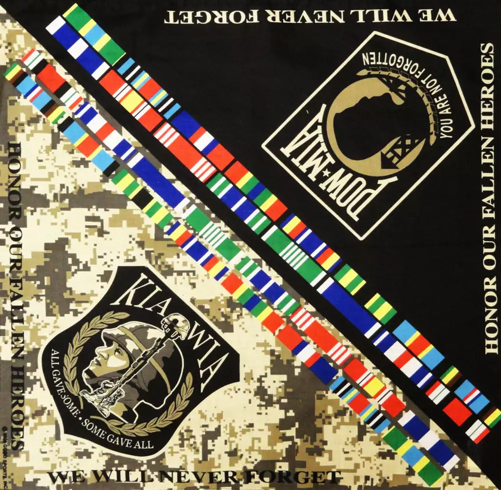 2 in 1 POW MIA – KIA WIA Bandana (22″ x 22″).