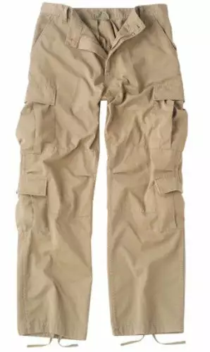 BDU Paratrooper Army Cargo Fatigues (Khaki). BDU’s or Battle Dress Uniforms is the official term used by the military for standard issue battle fatigues. Each pair of vintage Paratrooper fatigues features extremely durable and comfortable material that is cut to enhance mobility and maximize performance. Adjustable Waist Tabs make these pants fit you perfect, snug in the waist and loose cut in the legs makes these pants the perfect selection for people who demand comfort while pursuing the combat of life. These pants are way more then your average pair of cargo pants. The fatigues feature 8 pockets including 2 extra large thigh cargo pockets with button closures, 2 medium shin cargo pockets with button closures, 2 deep front pockets and 2 rear pockets also with pocket flaps and button closures. Draw string bottoms are perfect to keep the pants from dragging on the ground keeping you as mobile as possible. You can also tuck these pants into the top of your boots for an official military look and even better mobility. High quality zipper fly and button waist keeps these pants up and in place. Each pair of vintage fatigues feature plush vintage style material that looks and feels “worn in” like many pair of Gov’t issues fatigues you may find at a surplus store. Each pair is made of heavy duty 7.20 oz. 55% Cotton 45% Polyester Blend, that is breathable and tear proof. These pants are 100% Machine Washable and are sure to be your favorite pants for years to come.