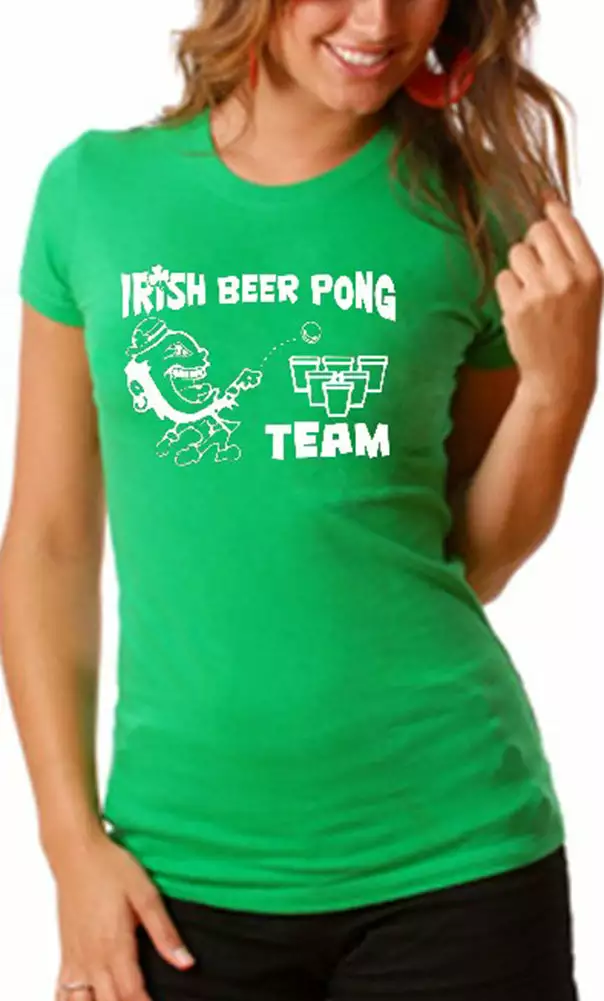 Beer Pong Shirts – Irish Beer Pong Team Girls T-Shirt. No other nationality is renowned for their drinking abilities like the Irish. Being Irish is like having a license to Drink! Thats why when it come to beer pong the Irish can play all night and still see straight! Now you too can be apart of the legendary Irish Beer Pong Team. Just thrown on your Irish Beer Pong T-Shirt and you are ready to play just like the Irish Beer Pong Legends of yesteryears!