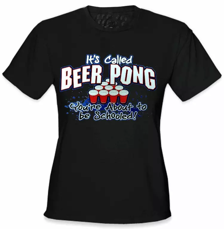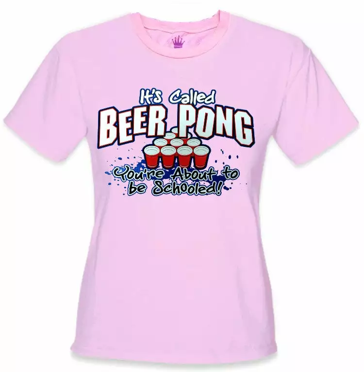 Beer Pong You’re About To Get Schooled Girls T-Shirt. Show you competitors who’s Boss! Wear this beer pong shirt to you next beer pong tournament or party: Let people you mean beer pong business. This stylish shirt SCREAMS Beer Pong and has the saying You’re about to be schooled on the bottom; a reminder to the public you are the unbeatable, undisputed Beer Pong Champion. Who wears the beer pong belt? Damn right you do.. As long as you’re wearing this shirt!