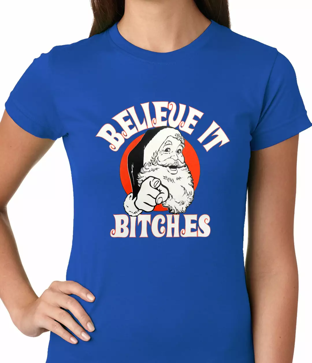 Bewild Believe B*tches Funny Santa Ladies T-shirt