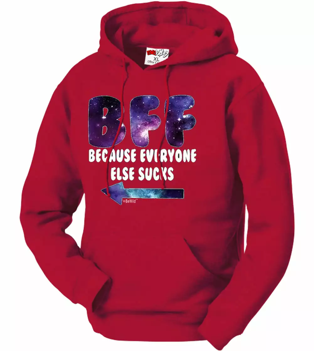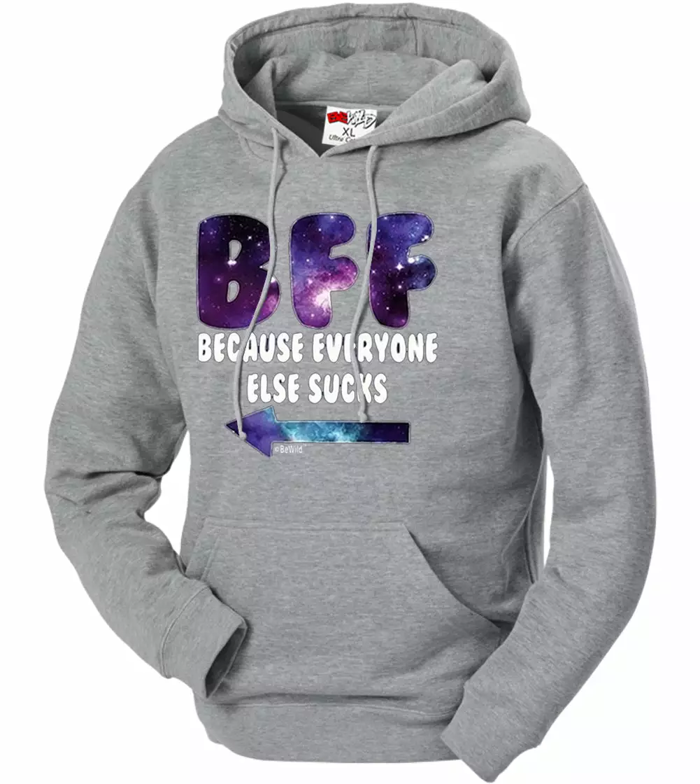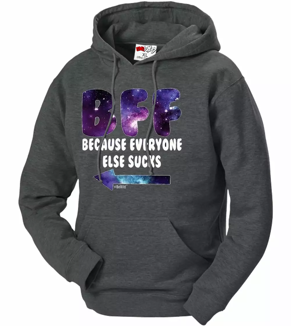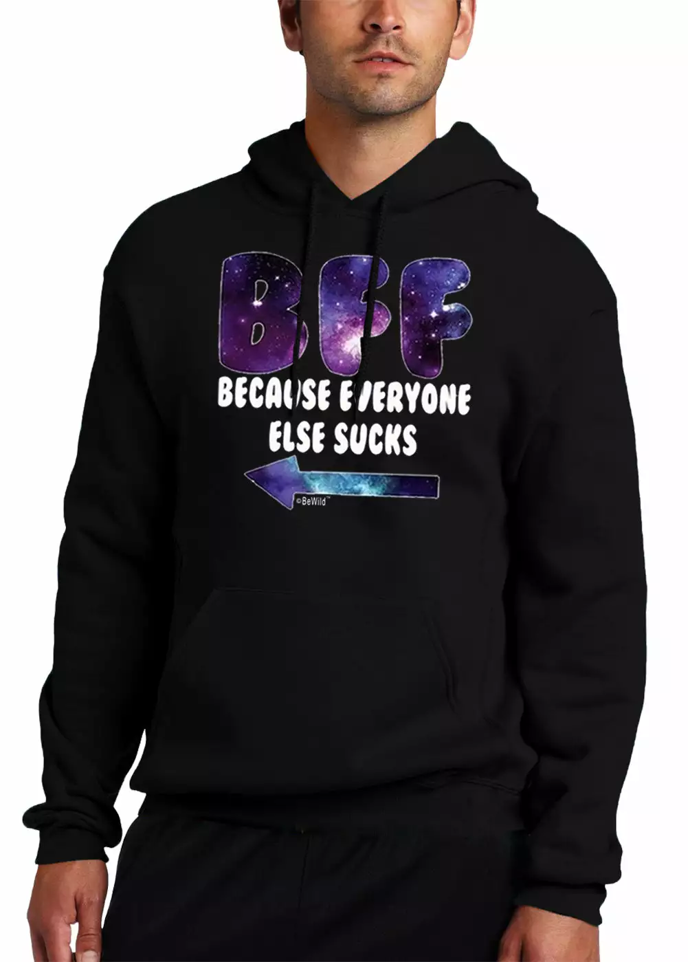 Arrow Left BFF Everyone Else Sucks is a sporty hooded pullover that will always look smooth, thanks to our pill-resistant fleece.