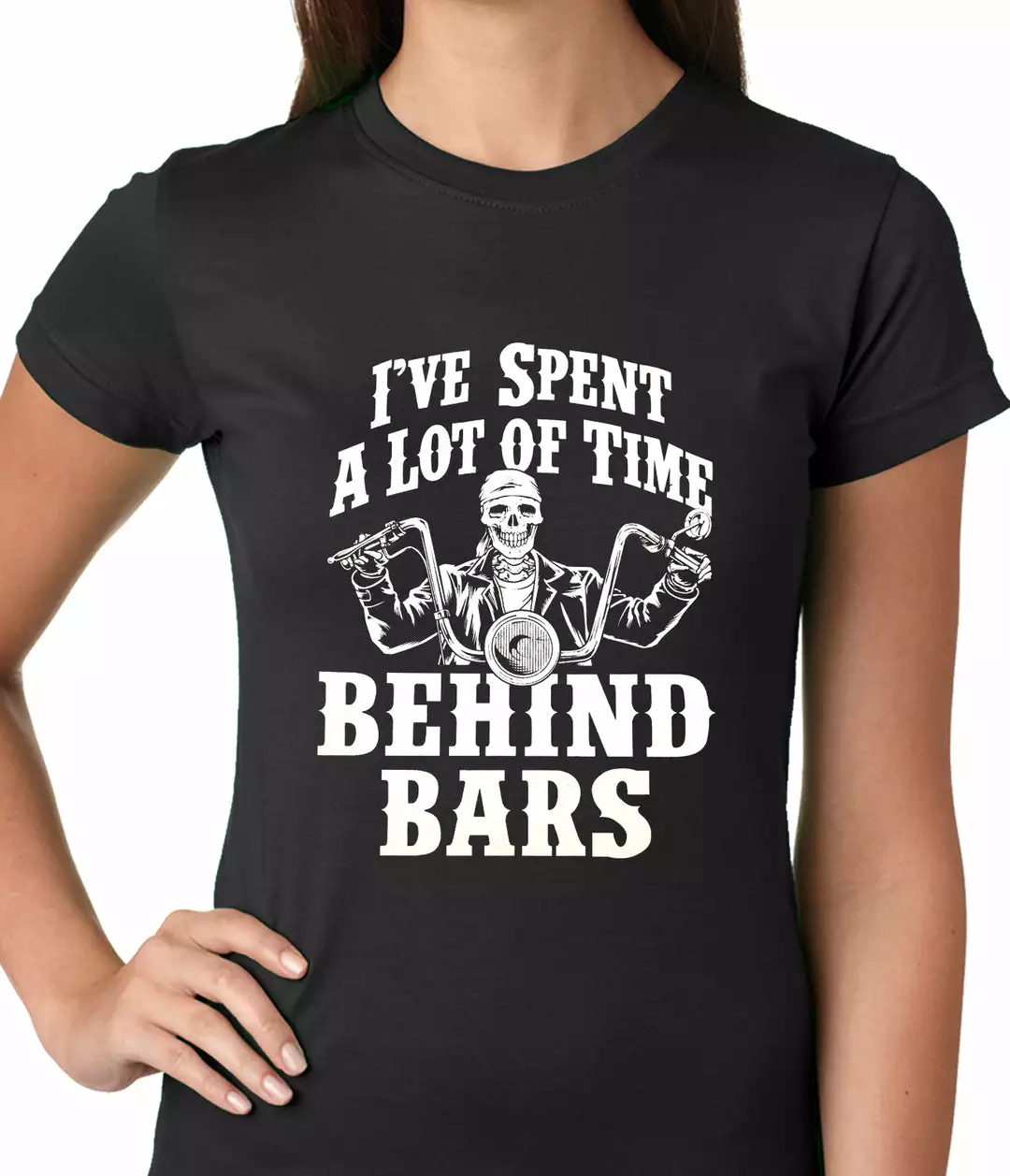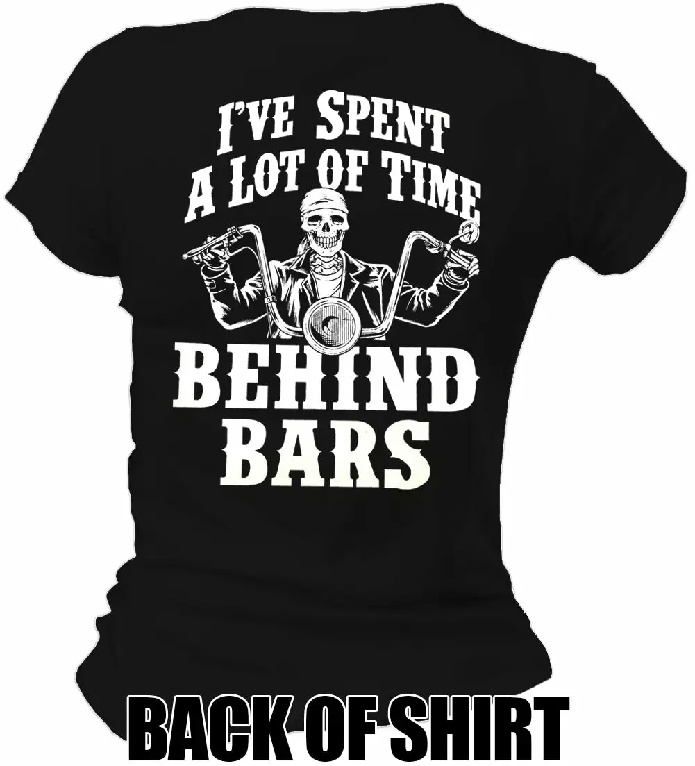 Bewild Biker Style I’ve Spent A Lot Of Time Behind Bars Ladies T-shirt