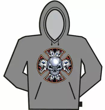 Multi Skull Cross, You will be able to picture yourself walking anywhere in this Grey Hooded 50/50 Sweatshirt. Designed for warmth and durability the 7.5 ounce, 50/50 blend fleece fabric with double-ply hood provides protection from a blinding snow storm at the North Pole or from blowing sand in the Mojave Desert. This hooded sweat is versitility plus. The convenient pouch pocket keeps hands warm or holds a water bottle. The matching drawstring and metal grommets on the hood make sure it stays where it belongs. The set-in sleeves, ribbed cuffs and banded bottom all keep this shirt together in a way that makes durability its middle name.