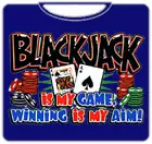 Black Jack Is My Game T-Shirt. Exclusively from Bewild.com, these new tee’s feature hard-core sayings that say it all. From “Trust Me I’m A Doctor” to “Thats Mr. Asshole To You”. How about a t-shirt that says “I Scored High On My Drug Test” Our short sleeve t-shirts are made from a 100% fully machine washable cotton/poly blend for a cool and comfortable fit every time. On the front of this shirt it says “Blackjack Is My Game, Winning Is My Aim!”.