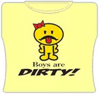 Boys Are Dirty Girls T-Shirt. Exclusively from Bewild.com, these new tee’s feature hard-core sayings that say it all. From “Trust Me I’m A Doctor” to “Thats Mr. Asshole To You”. How about a t-shirt that says “I Scored High On My Drug Test” Our short sleeve t-shirts are made from a 100% fully machine washable cotton/poly blend for a cool and comfortable fit every time. On the front of this shirt it says “Boys are dirty”.