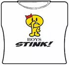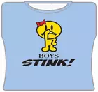 Boys Stink Girls T-Shirt. Exclusively from Bewild.com, these new tee’s feature hard-core sayings that say it all. From “Trust Me I’m A Doctor” to “Thats Mr. Asshole To You”. How about a t-shirt that says “I Scored High On My Drug Test” Our short sleeve t-shirts are made from a 100% fully machine washable cotton/poly blend for a cool and comfortable fit every time. On the front of this shirt it says “Boys Stink”.