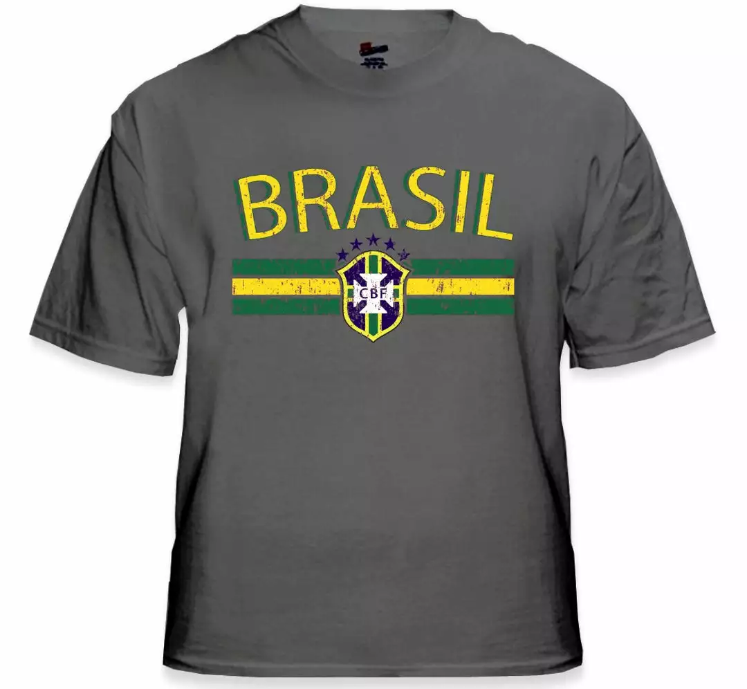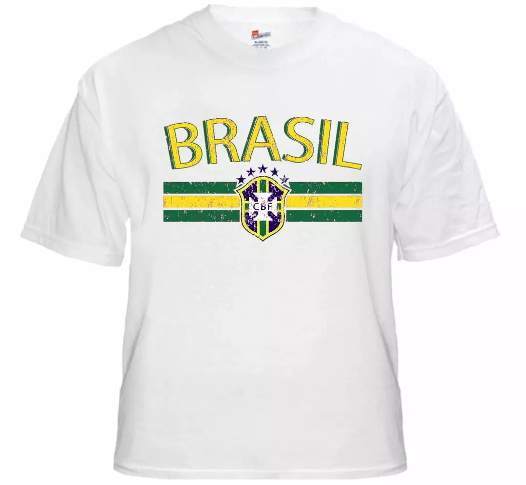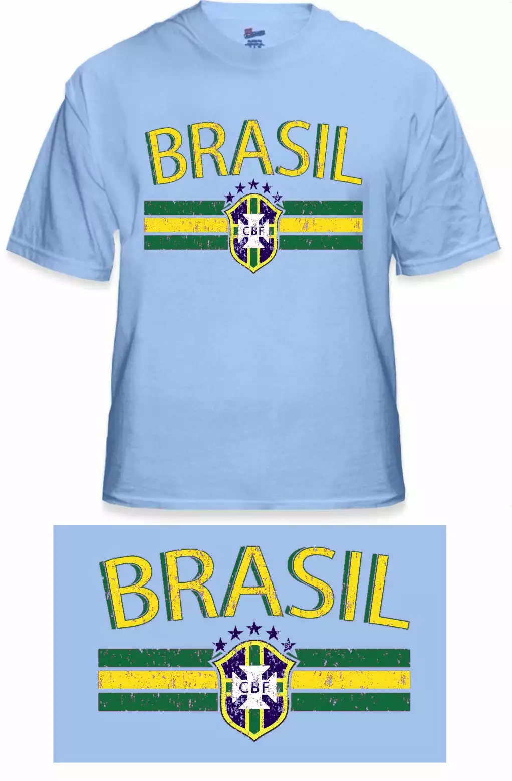 Brasil Vintage Shield International Mens T-Shirt. Show pride for your favorite Nation! Our collection of deluxe vintage international print t-shirts are the perfect way to support your home country. Each shirt features premium vintage style designs made to look distressed for that soft “Favorite Old T-shirt” look from day one. These shirts are perfect whether you are rooting for your favorite soccer nation or just showing your love for a special country. Bold athletic style writing spells out each country’s name curved above the country’s national shield; a classic design that is sure to display your patriotism! Each shirt is printed to order on a deluxe Cotton tee shirt in your choice of color.