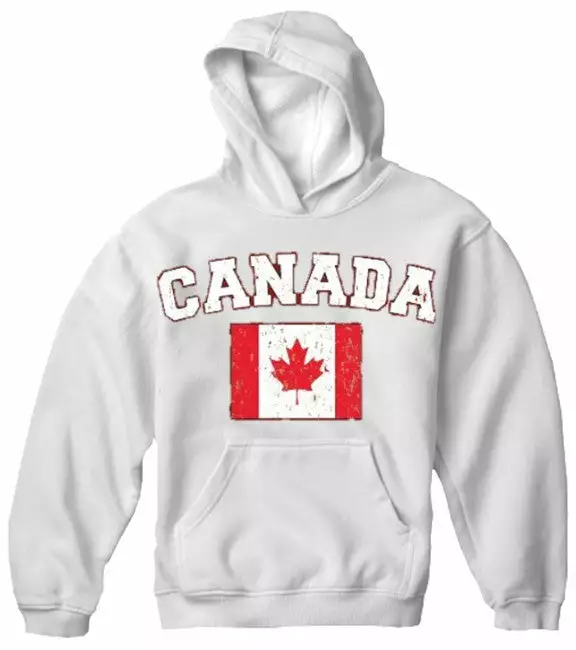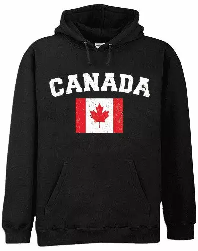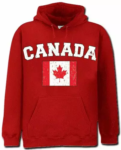 Canada Vintage Flag International Hoodie. Show pride for your favorite Nation! Our collection of deluxe vintage international print Hoodies are the perfect way to support your home country. Each shirt features premium vintage style designs made to look distressed for that soft “Favorite Old Sweatshirt” look from day one. These shirts are perfect whether you are rooting for your favorite soccer nation or just showing your love for a special country. Bold athletic style writing spells out each country’s name curved above the country’s national shield; a classic design that is sure to display your patriotism! Each shirt is printed to order on a deluxe hooded sweatshirt in your choice of color.