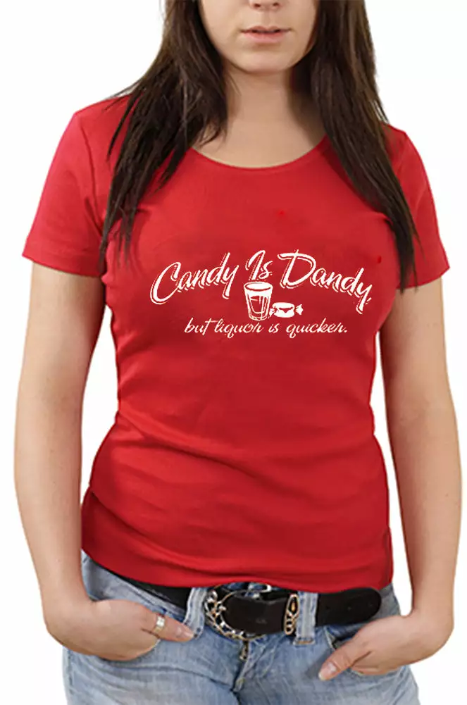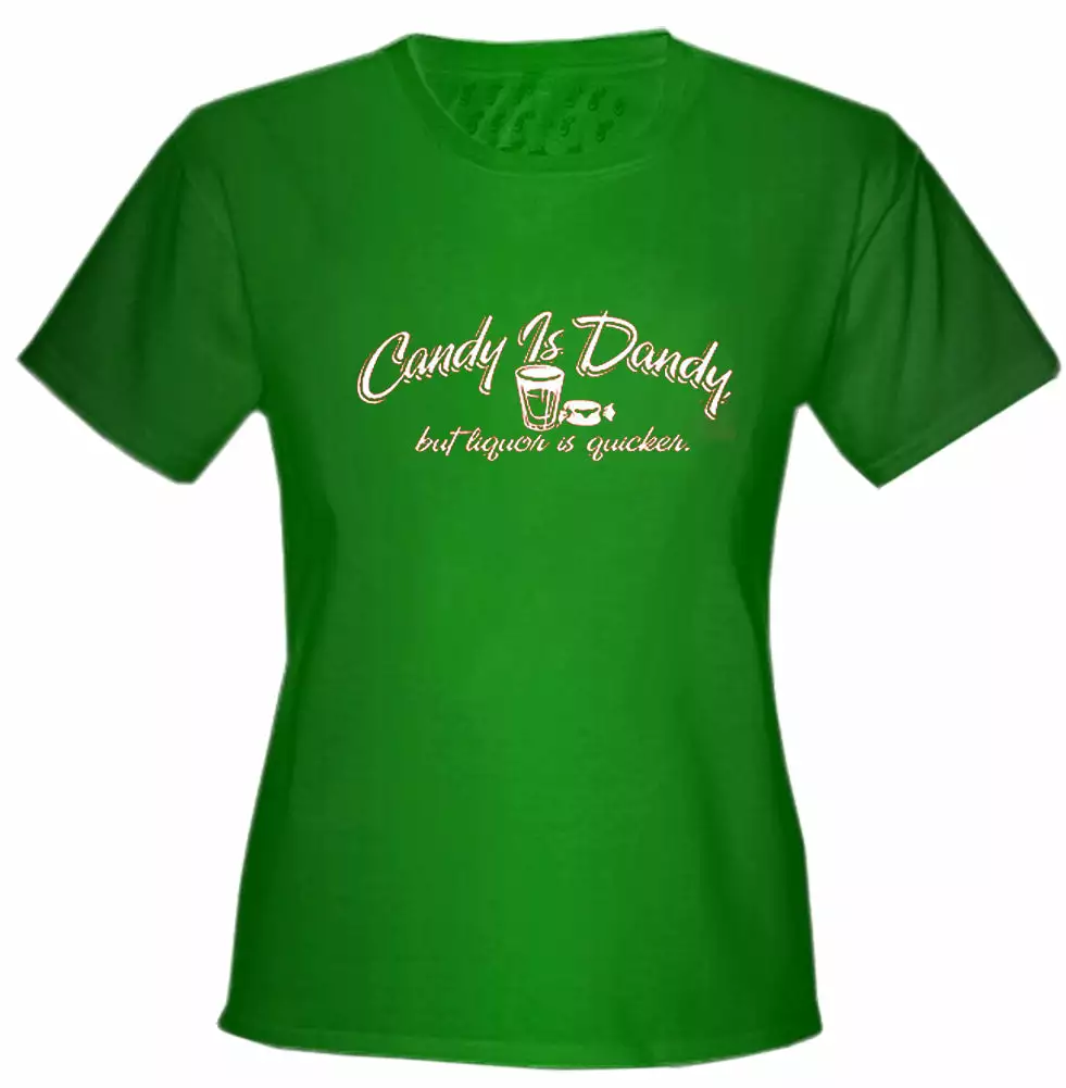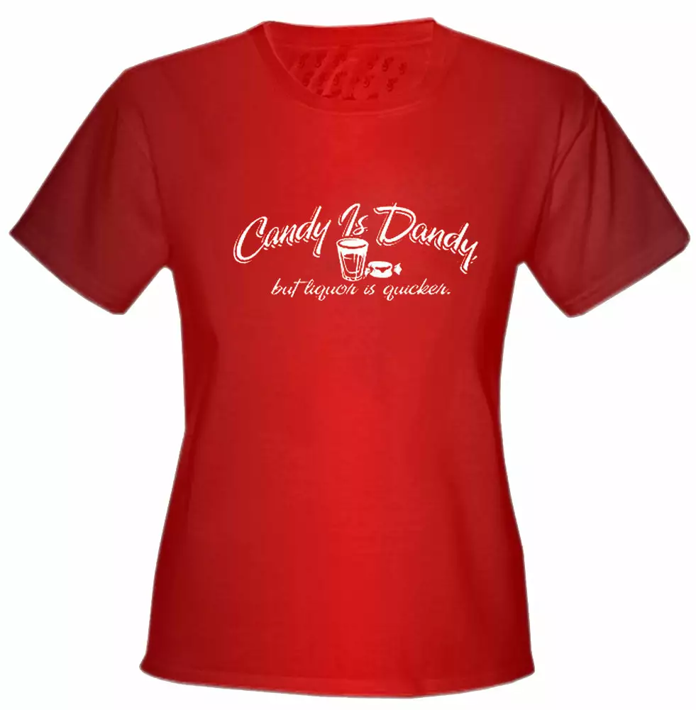 Candy Is Dandy Girls T-Shirt. Exclusively from Bewild.com, these new tee’s feature hard-core sayings that say it all. From “Trust Me I’m A Doctor” to “Thats Mr. Asshole To You”. How about a t-shirt that says “I Scored High On My Drug Test” Our short sleeve t-shirts are made from a 100% fully machine washable cotton/poly blend for a cool and comfortable fit every time. On the front of this shirt it says “Candy Is Dandy But Liquor Is Quicker”.