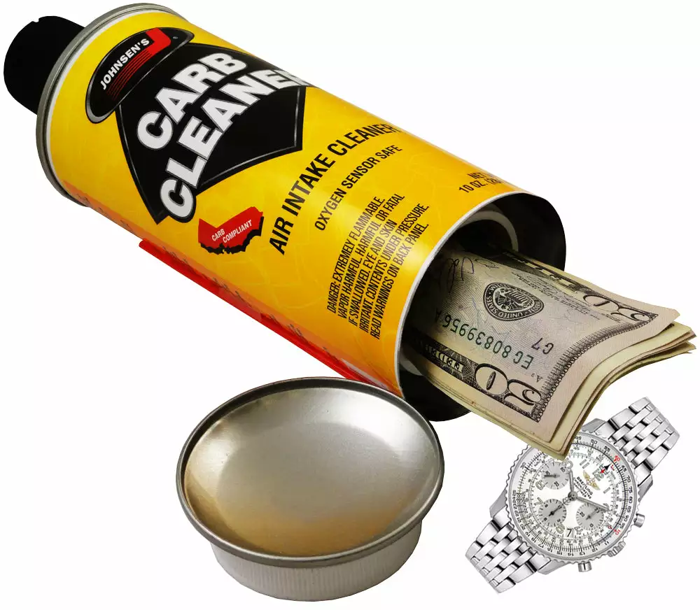Carb Cleaner Diversion Safe.The Chicago Crime Commission states that a burglar spends an average of 8 minutes in the victim’s home. Put the odds in your favor…hide your valuables in plain sight. The diversion safes are a unique home-security product. We offer a wide variety of personal care, household products and food containers with removable tops and bottoms. Valuables can be discreetly stored inside these look-a-like containers and kept in their seemingly rightful places. Each is indistinguishable from the genuine product and is even weighted to feel full. These sodas wont quench your thirst, but will quench a thiefs ability to find your most cherished treasures. Safely stash away anything you choose by twisting open the top of the can to reveal the secret compartment. These cans are indistinguishable from the genuine product and even weighted to feel full. Carb Cleaner Diversion Safe.