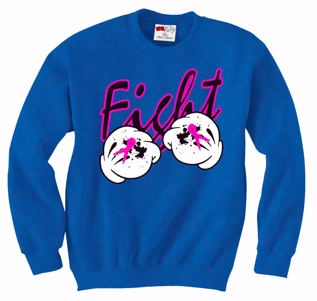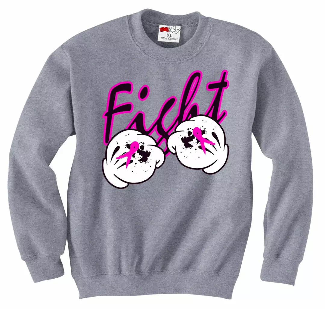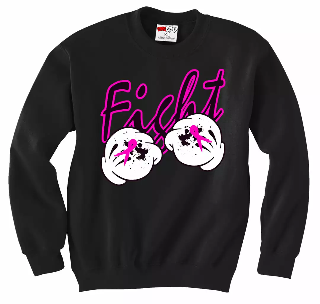 Bewild Cartoon Hands Fight Breast Cancer Adult Crewneck Positive Reinforcement