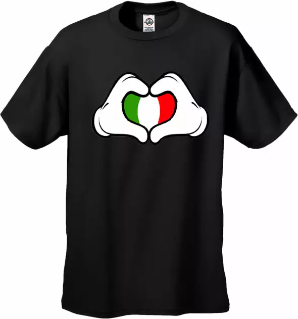 Bewild Cartoon Heart Hands Italian Flag Men’s T-Shirt Nationality & Ethnic