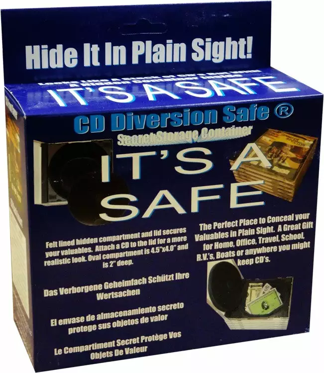 This safe may look like a pile of your favorite CD’s but don’t be fooled.. This stack of CD cases may just hold your most valuable and secretive possessions. You can customize the top CD by inserting your favorite CD’s front booklet into the jewel case disguising the cd stack as if it where your own. Place the stack amongst other CD’s and nobody would ever suspect a thing. The Chicago Crime Commission states that a burglar spends an average of 8 minutes in the victim’s home. Put the odds in your favor…hide your valuables in plain sight. The diversion safes are a unique home-security product. We offer a wide variety of personal care, household products and food containers with removable tops and bottoms. Valuables can be discreetly stored inside these look-a-like containers and kept in their seemingly rightful places. Each is undistinguishable from the genuine product and is even weighted to feel full.