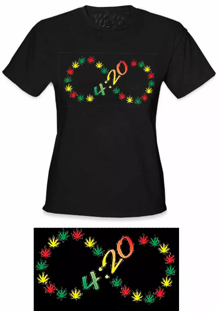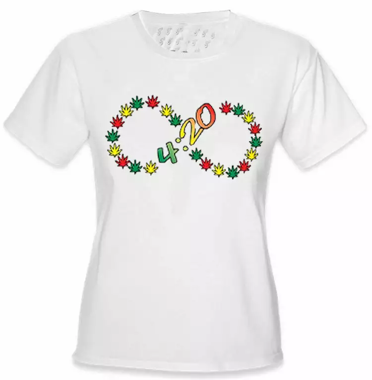 420 Infinity Girl’s T-Shirt . Junior Fitted shirts are a S-32″ at bust and 29″ at waist, M-34″ at bust and 30″ at waist , L36″ at bust and 34″ at waist, XL-38″ at bust and 35″ at waist.