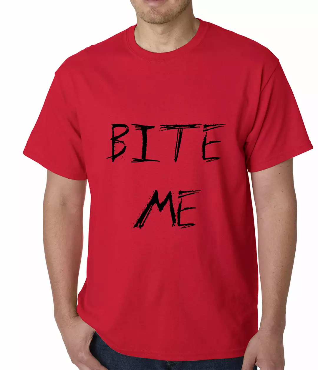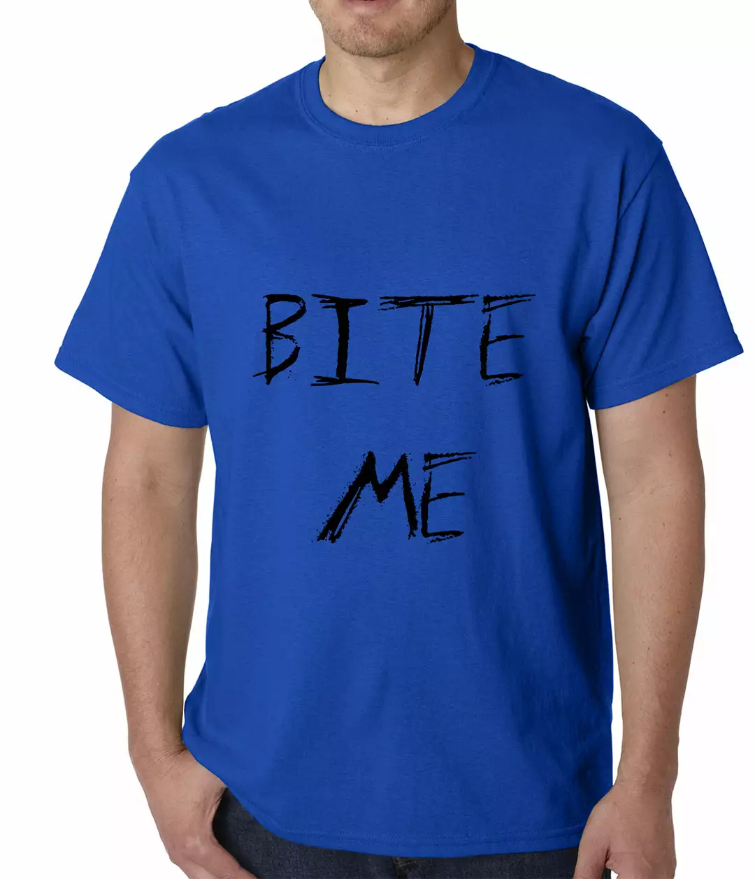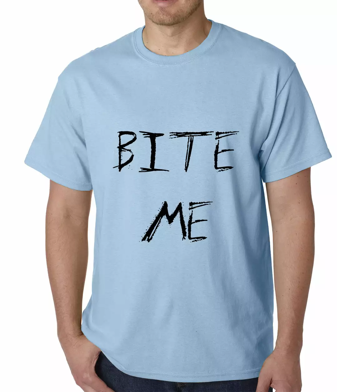 Bewild Cool Funny & Offensive Bite Me Zombie And Vampire Lovers Mens T-shirt