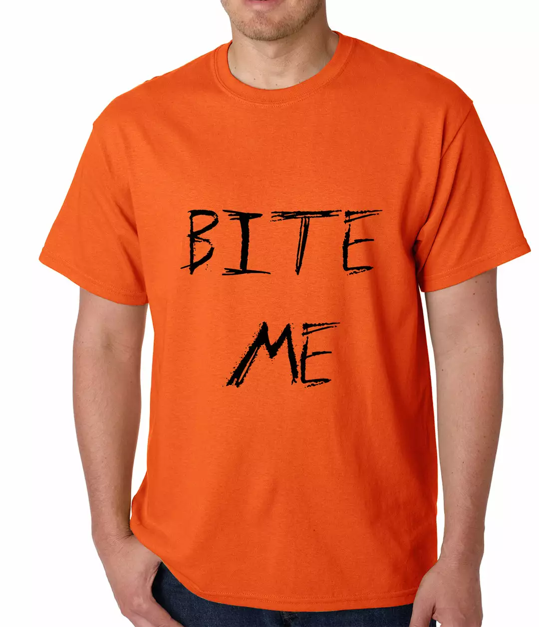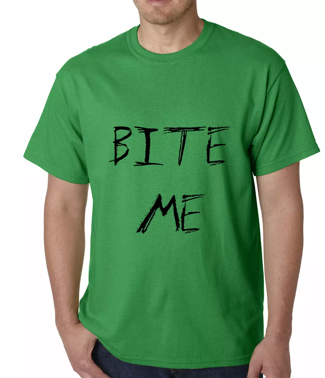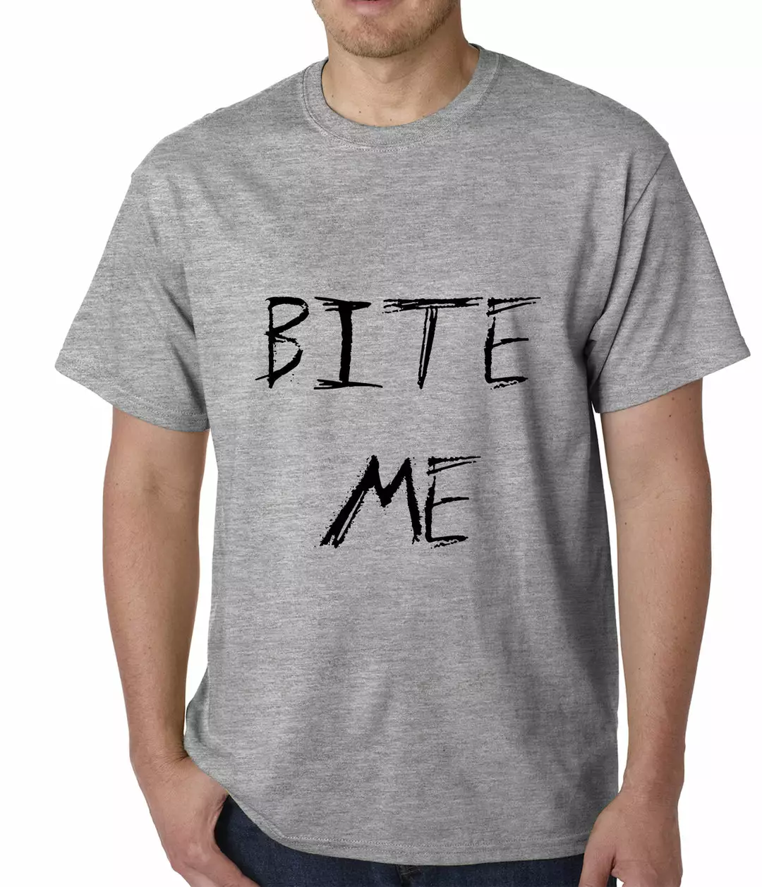 Bewild Cool Funny & Offensive Bite Me Zombie And Vampire Lovers Mens T-shirt