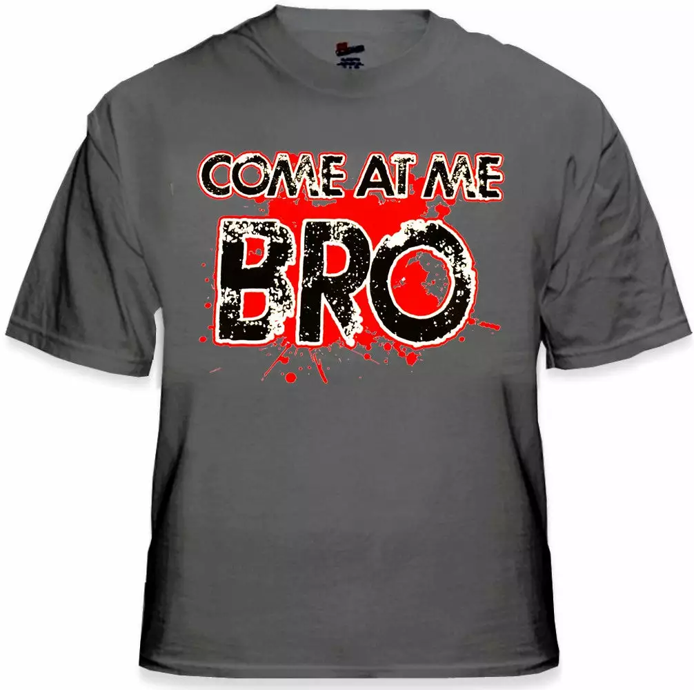 Come At Me Bro T-Shirt. When it comes to Guidos the beach is like a mecha of guidoism. Hit the board walk and fist pump it up! This t-shirt is done up in with the “come at me bro” saying on the front. Be Proud! Wear this tee! This design is printed on a deluxe, super soft 100% cotton tee in your choice of color.