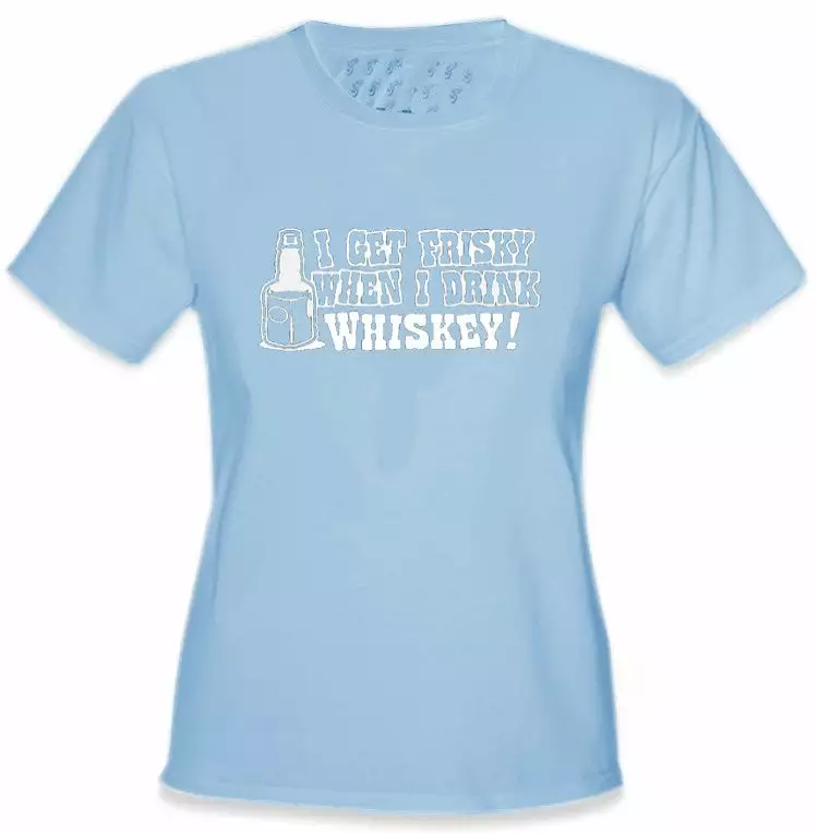 Friskey When I Drink Whiskey Girls T-Shirt. Now say it with a Statement T-Shirt. Exclusively from Bewild.com, these new tee’s feature hard-core sayings that say it all. From “Lick Here For Full View” to “Skanky white-trailer trash”. How about a t-shirt that says “Dip me in Chocolate and throw me to the lesbians?” Our short sleeve “Friskey When I Drink Whiskey” t-shirts are made from a 100% fully machine washable preshrunk cotton for a cool and comfortable fit every time.