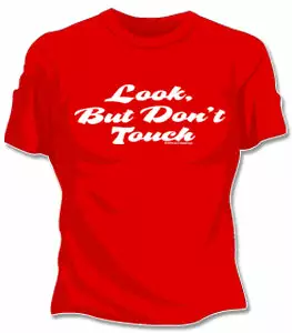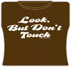 Look But Don’t Touch Girls T-Shirt. Exclusively from Bewild.com, these new tee’s feature hard-core sayings that say it all. From “Lick Here For Full View” to “Skanky white-trailer trash”. How about a t-shirt that says “Dip me in Chocolate and throw me to the lesbians?” Our short sleeve “Look But Don’t Touch” t-shirts are made from a 100% fully machine washable preshrunk cotton for a cool and comfortable fit every time.