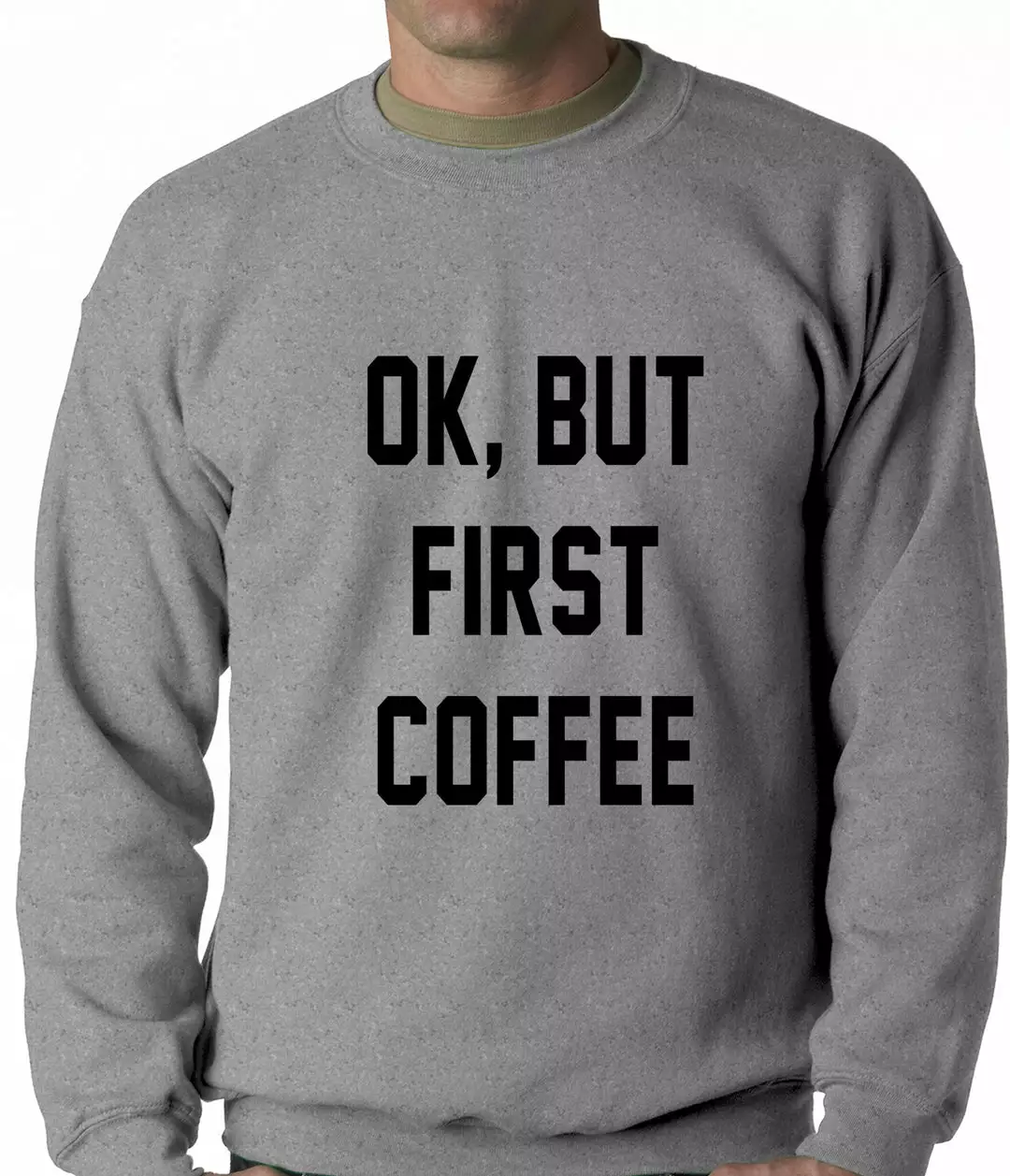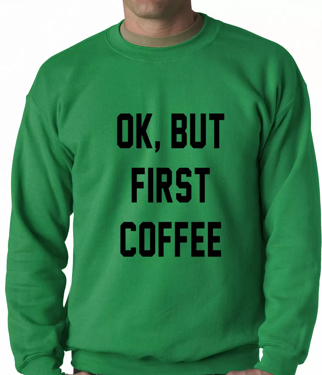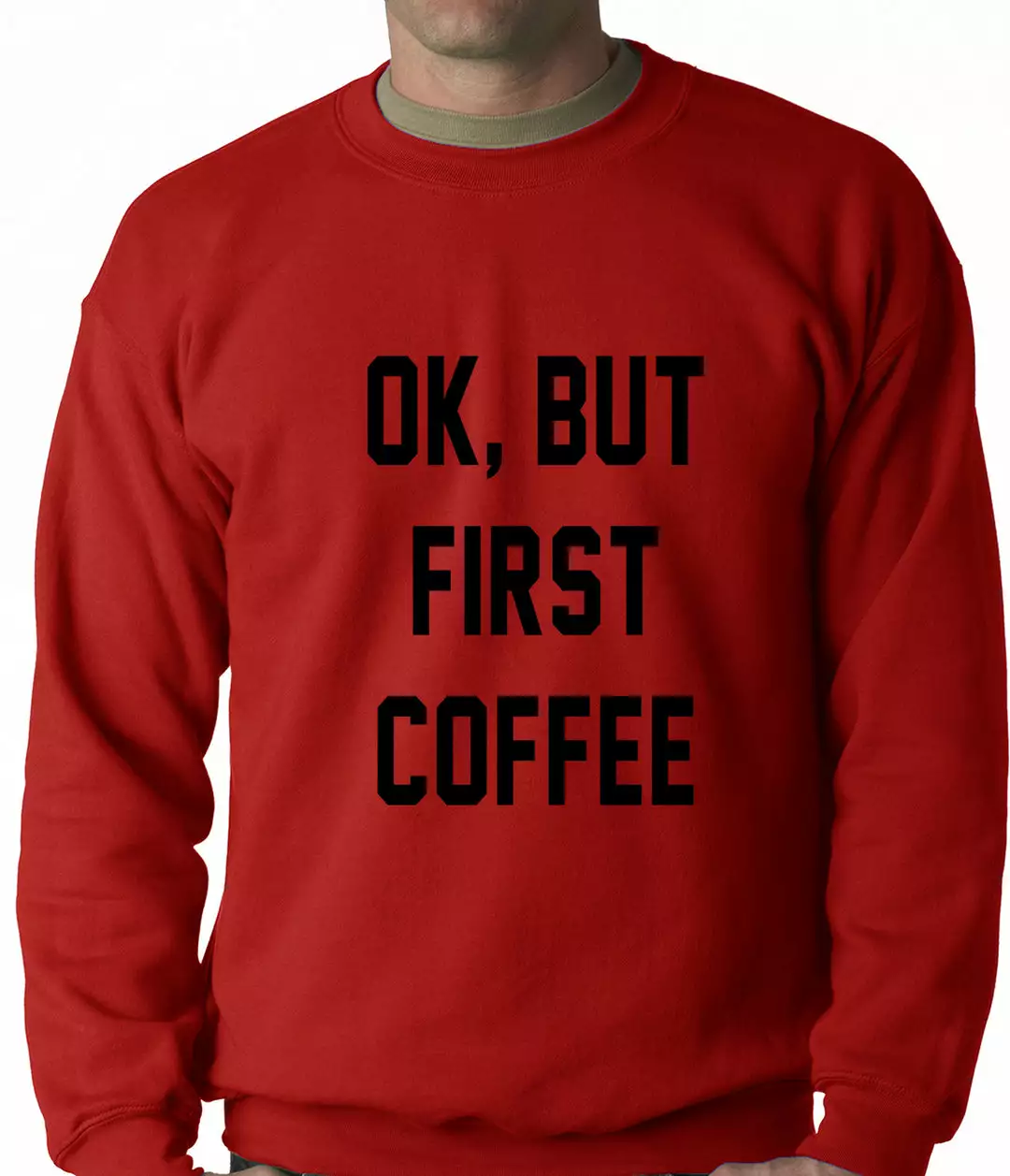 Bewild Cool Funny & Offensive Ok, But First Coffee Adult Crewneck