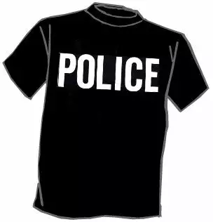 This men’s novelty t-shirts is 50/50 Poly/Cotton, 100% machine washable and made in the USA. Shirt has Police printed on the front and back.