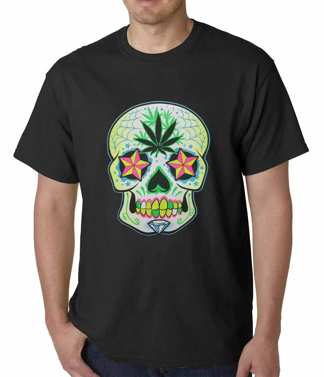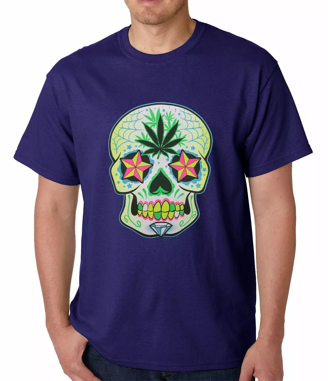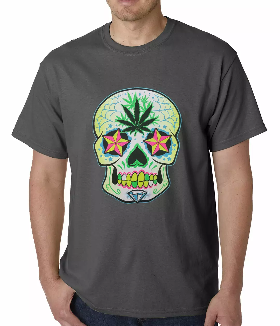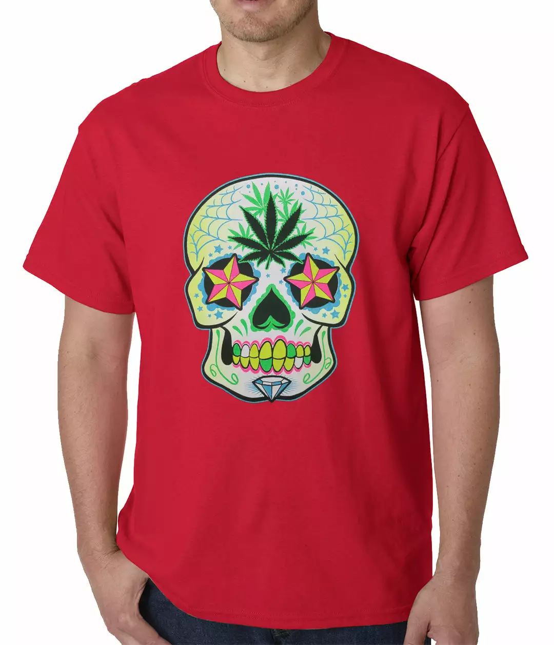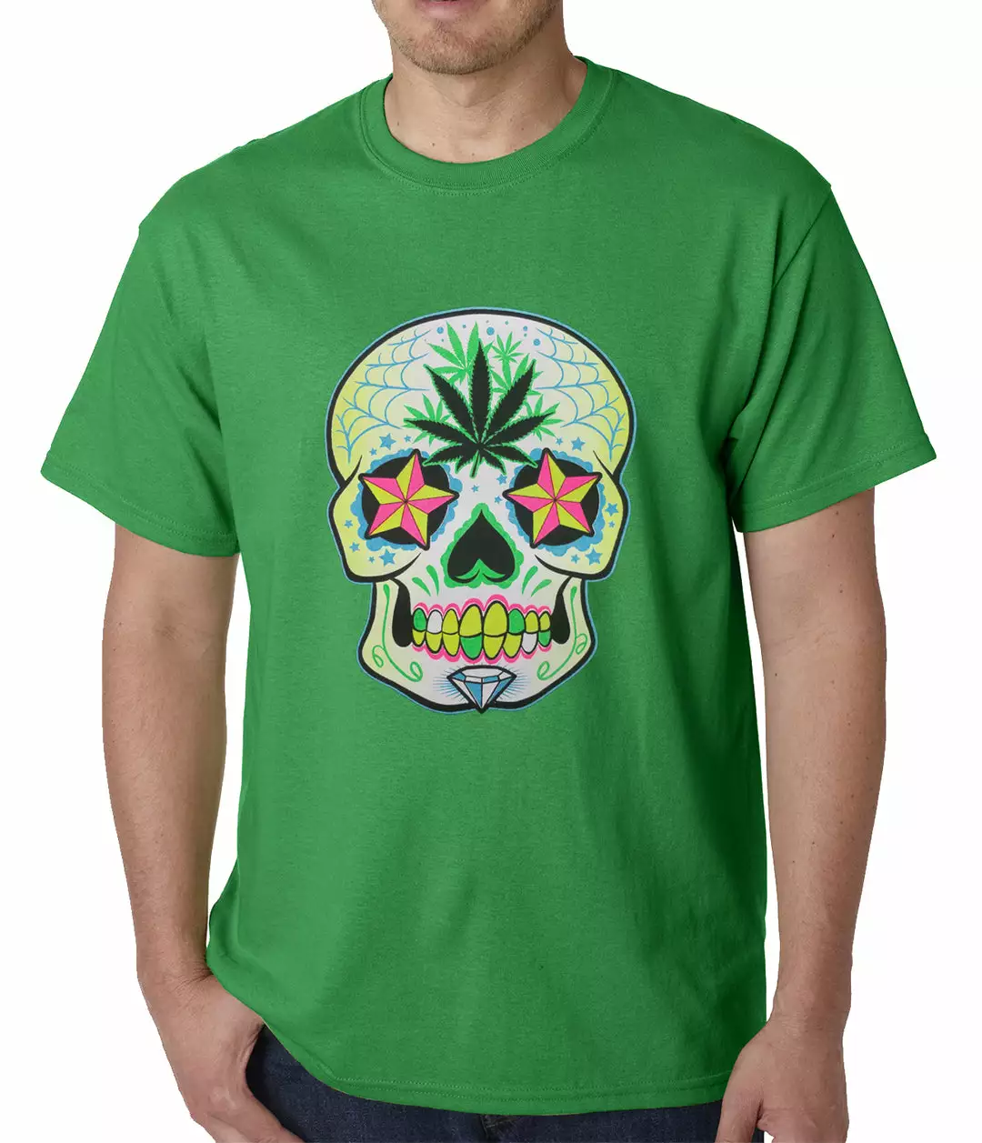 Get your hands on this amazing Pot Leaf Sugar Skull Top. All of our Pot Leaf Sugar Skull Tops have a classic, comfortable fit as well as being pre-shrunk, so you can expect little to no shrinkage.