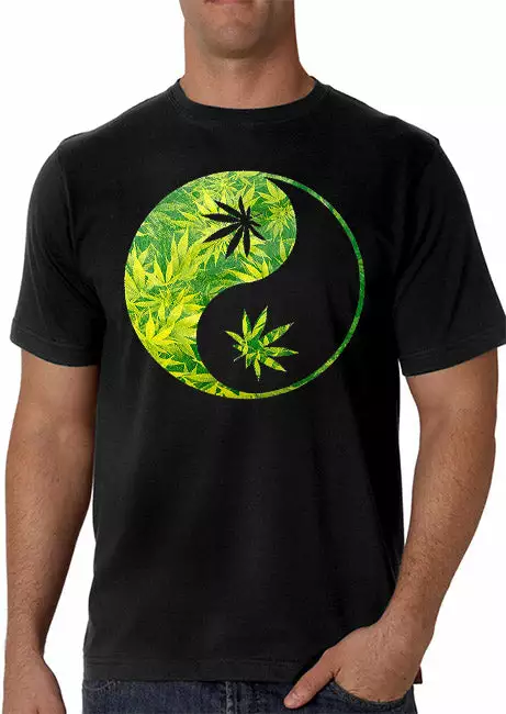 Pot Leaf Ying Yang Men’s T-Shirt features a classic 100% Cotton style is a great choice for anyone’s T-shirt drawer. These Pot Leaf Ying Yang Men’s T-Shirts have been printed with image on the front. These t shirts are made from heavyweight 6oz. 100% Preshrunk cotton. Looks Great, Priced right – and gets better with each washing.