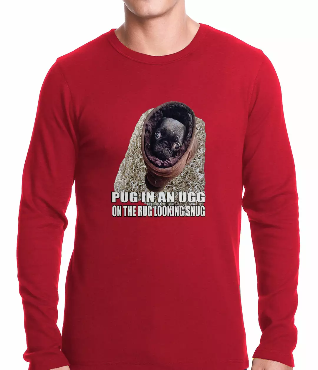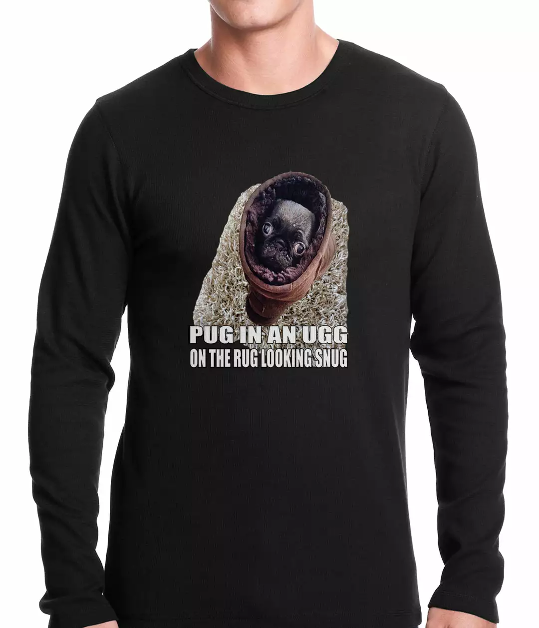 Bewild Cool Funny & Offensive Pug In An Ugg On A Rug Looking Snug Thermal Shirt