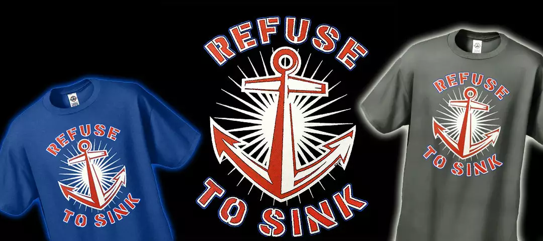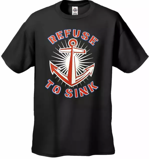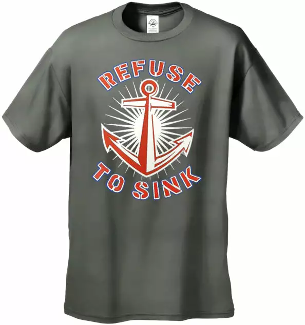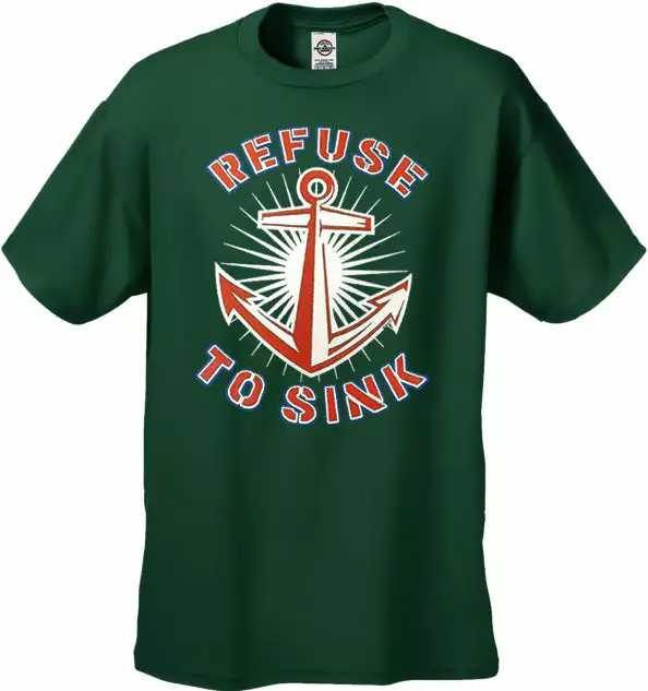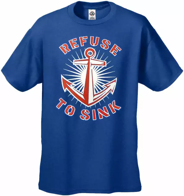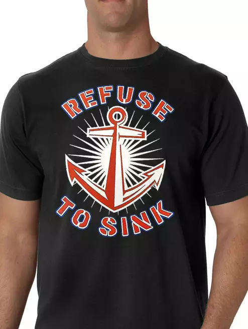 Refuse To Sink Men’s T-Shirt features a classic 100% Cotton style is a great choice for anyone’s T-shirt drawer. These Refuse To Sink Men’s T-Shirt have been printed with image on the front. These Refuse To Sink t shirts are made from heavyweight 6oz. 100% Preshrunk cotton. Looks Great, Priced right – and gets better with each washing. Preshrunk 100% cotton jersey 6-oz. Seamless double-needle 7/8″ collar Taped neck and shoulders Double-needle sleeve and bottom hems Quarter-turned to eliminate center crease