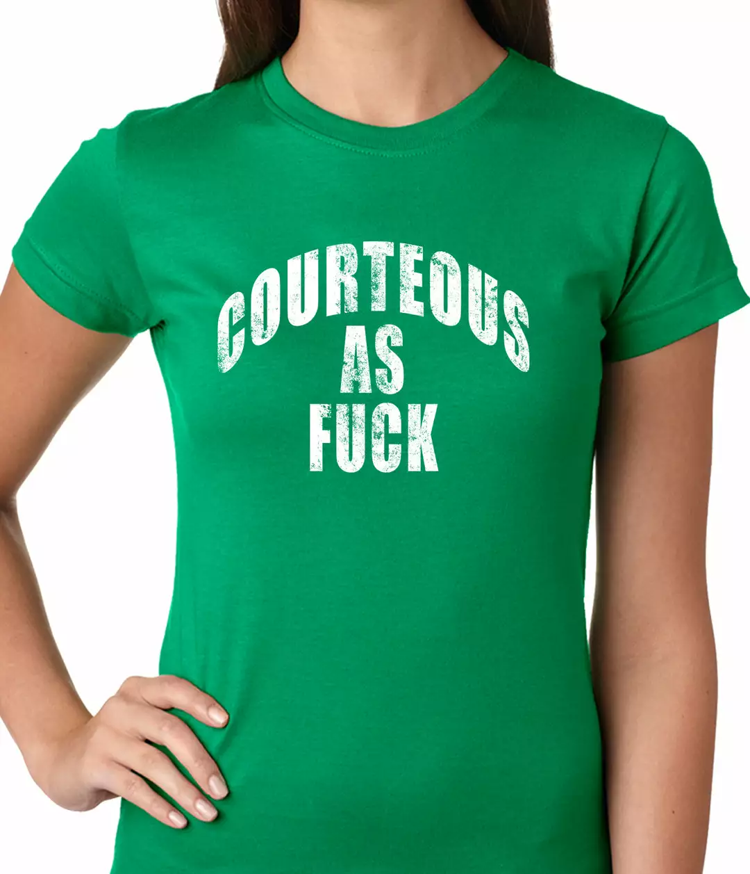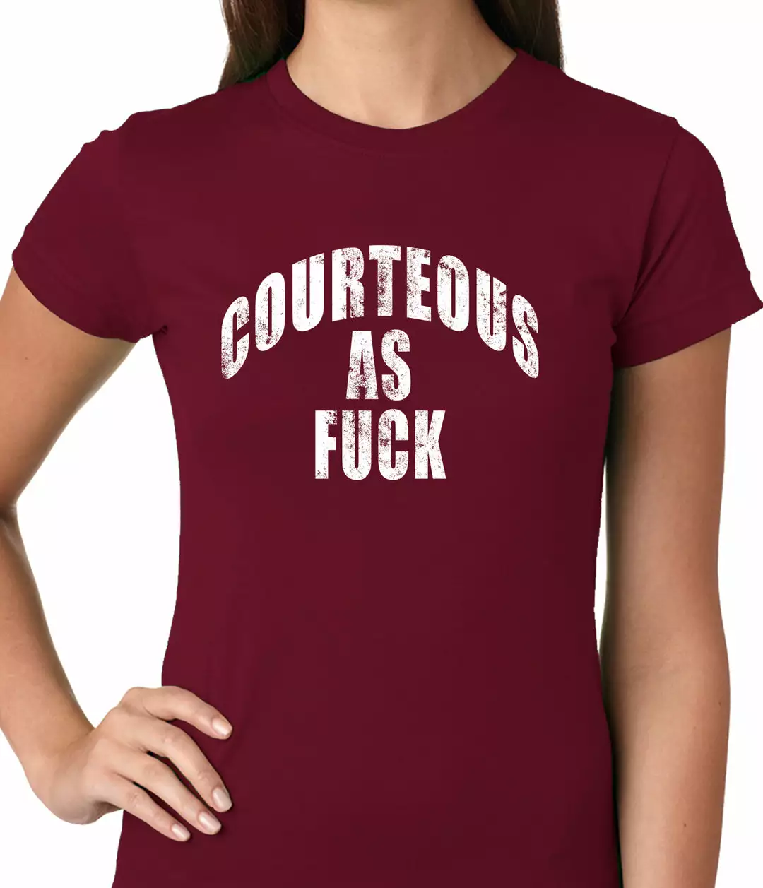 Get your hands on this amazing Courteous As Fuck Top. All of our Courteous As Fuck Tops have a classic, comfortable fit as well as being pre-shrunk, so you can expect little to no shrinkage.