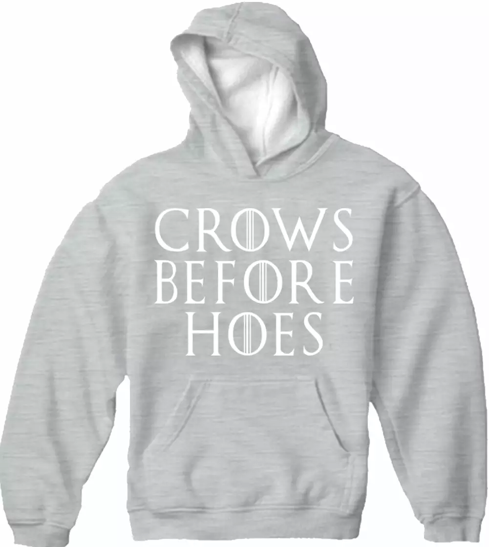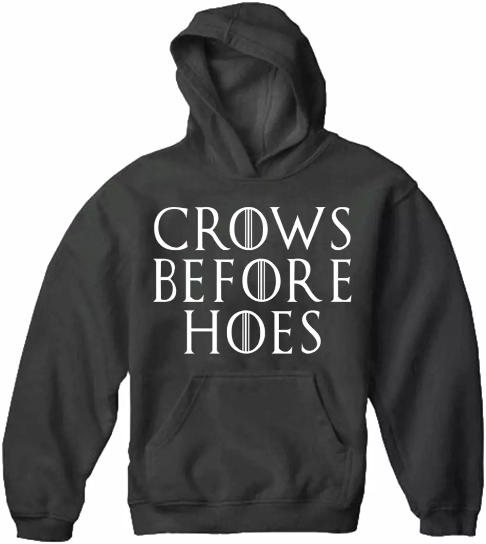 Jon Snow Crows Before Hoes Adult Hoodie features a classic 100% Cotton style is a great choice for anyone’s wardrobe. These Crows Before Hoes Adult Hoodies have been printed with image on the front.