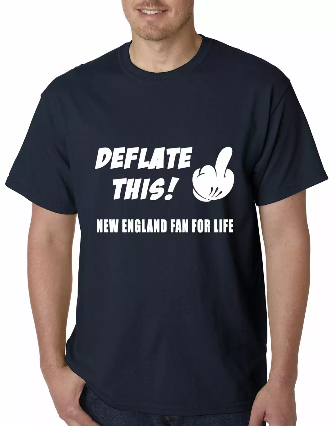 Bewild Deflate This! Middle Finger New England Fan For Life Mens T-shirt Sport Inspiration