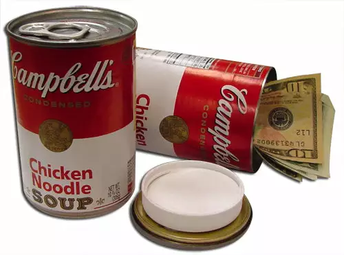 This can of Campbell Chicken Noodle Soup wont be a tastey treat, but will protect your most cherished belongings. Safely stash away anything you choose by twisting open the top of the can to reveal the secret compartment. These cans are indistinguishable from the genuine product and even weighted to feel full.
