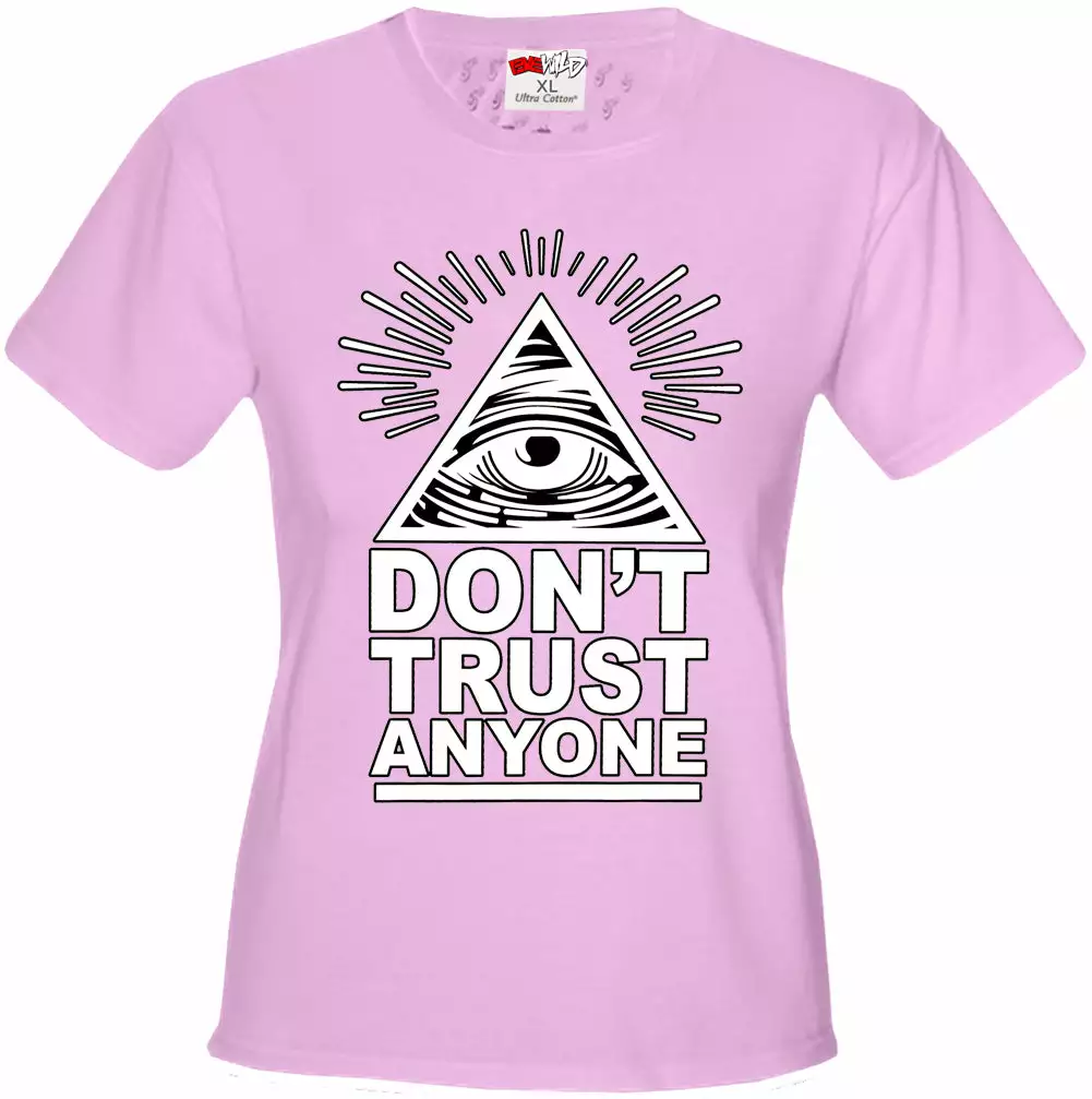 Don’t Trust Anyone Girls T-shirts have a classic, comfortable fit. Shirts are pre-shrunk, so you can expect little to no shrinkage. Available in a Womens Box-cut style, or a Juniors fitted shirt that is contoured at the waist.