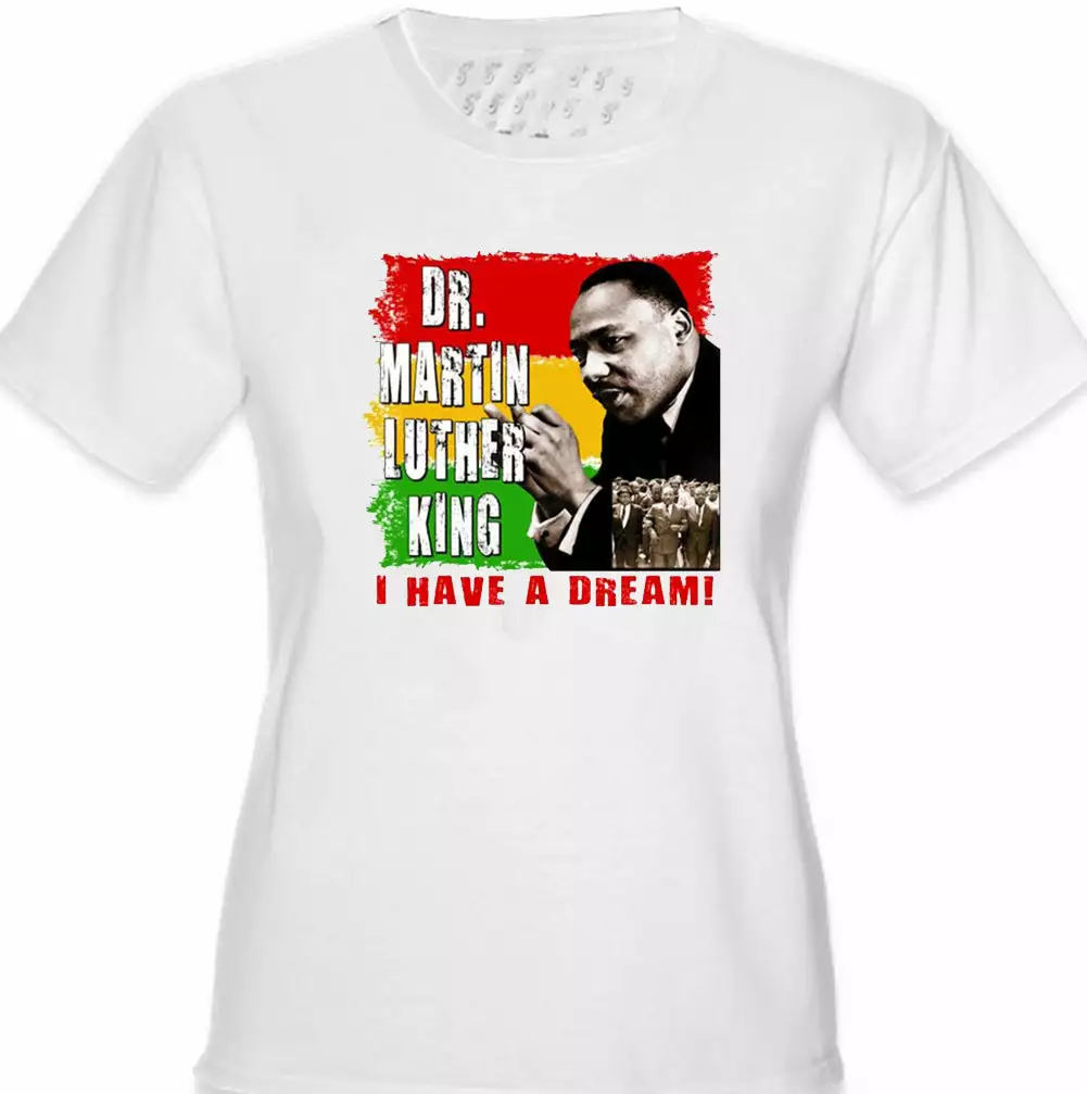 Junior Fitted Dr. Martin Luther King I Have A Dream shirts are a S-32″ at bust and 29″ at waist, M-34″ at bust and 30″ at waist , L36″ at bust and 34″ at waist, XL-38″ at bust and 35″ at waist.