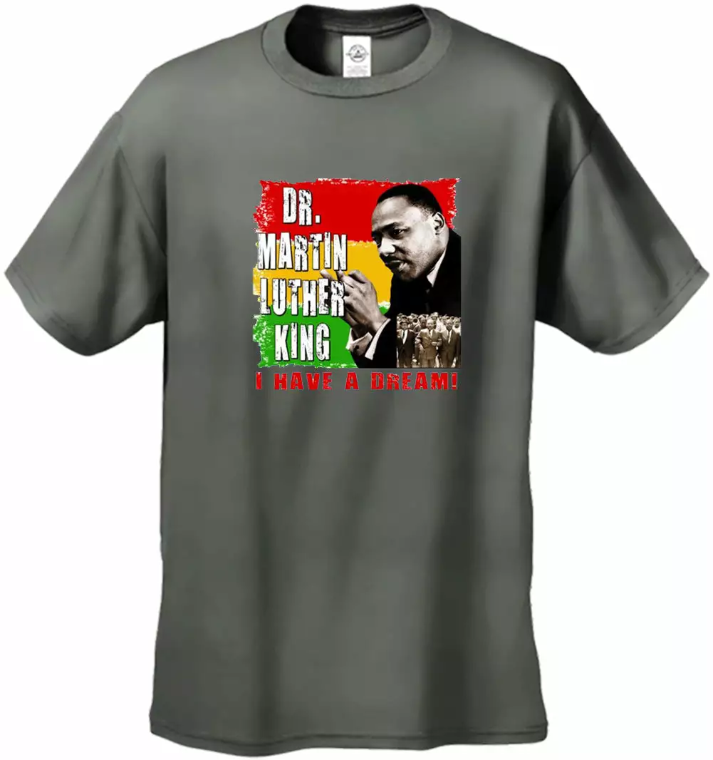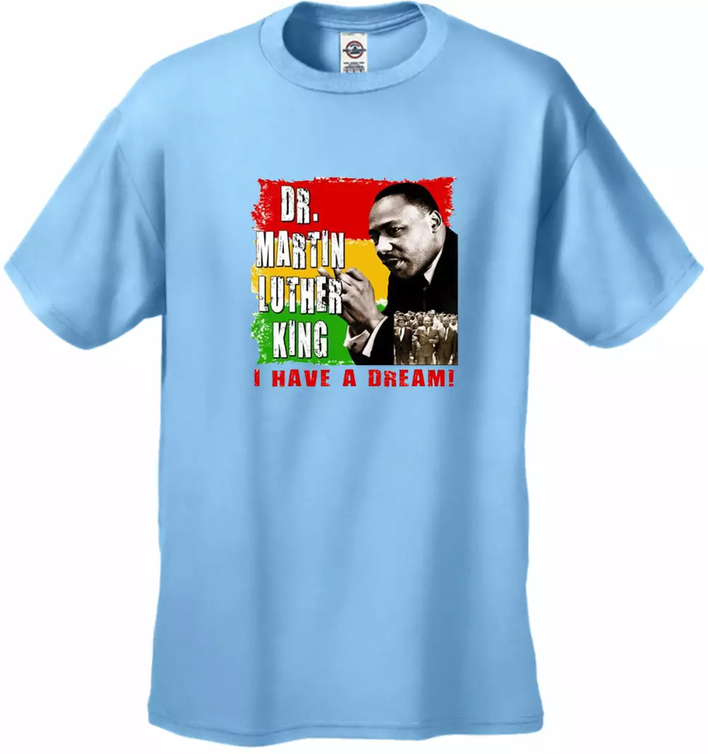 Dr. Martin Luther King I Have A Dream features a classic 100% Cotton style is a great choice for anyone. These Dr. Martin Luther King I Have A Dream Men’s T-Shirt have been printed with image on the front. These t shirts are made from heavyweight 6oz. 100% Preshrunk cotton. Looks Great, Priced right – and gets better with each washing.