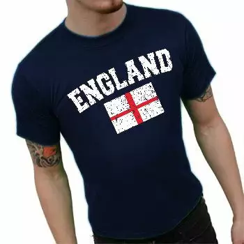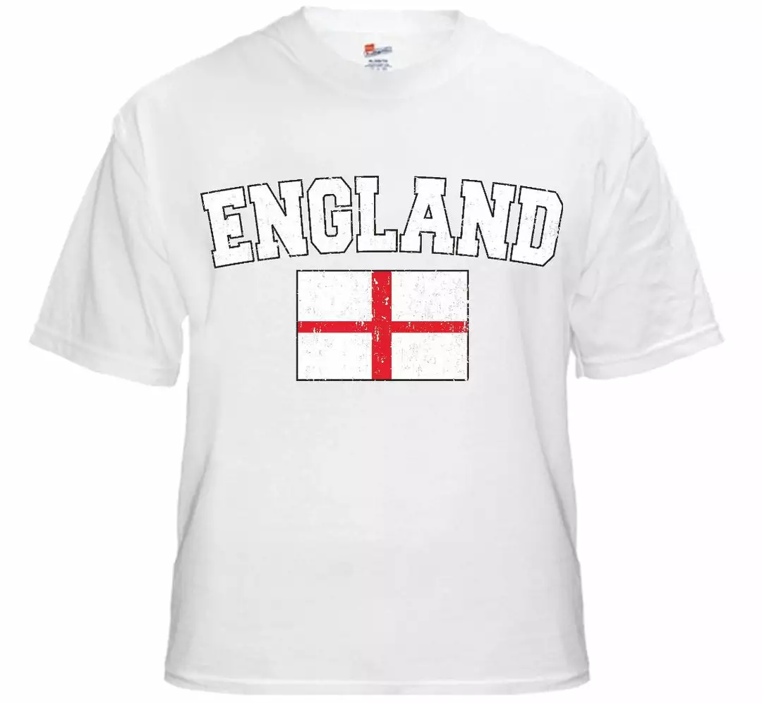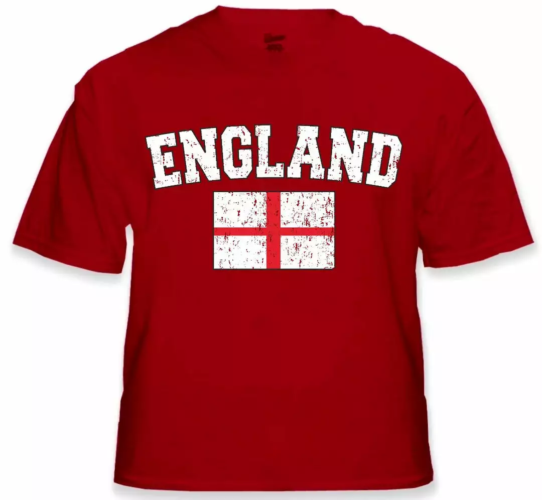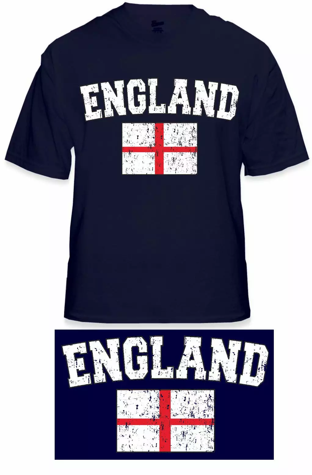 England Vintage Flag International Mens T-Shirt. Show pride for your favorite Nation! Our collection of deluxe vintage international print t-shirts are the perfect way to support your home country. Each shirt features premium vintage style designs made to look distressed for that soft “Favorite Old T-shirt” look from day one. These shirts are perfect whether you are rooting for your favorite soccer nation or just showing your love for a special country. Bold athletic style writing spells out each country’s name curved above the country’s national shield; a classic design that is sure to display your patriotism! Each shirt is printed to order on a deluxe Cotton tee shirt in your choice of color.