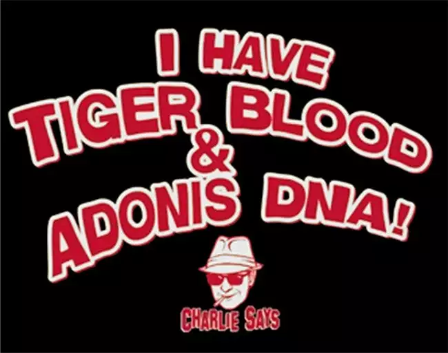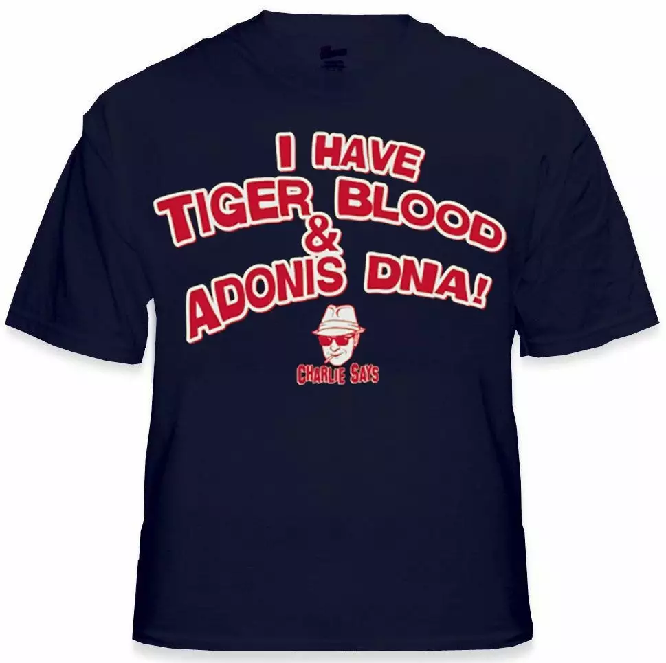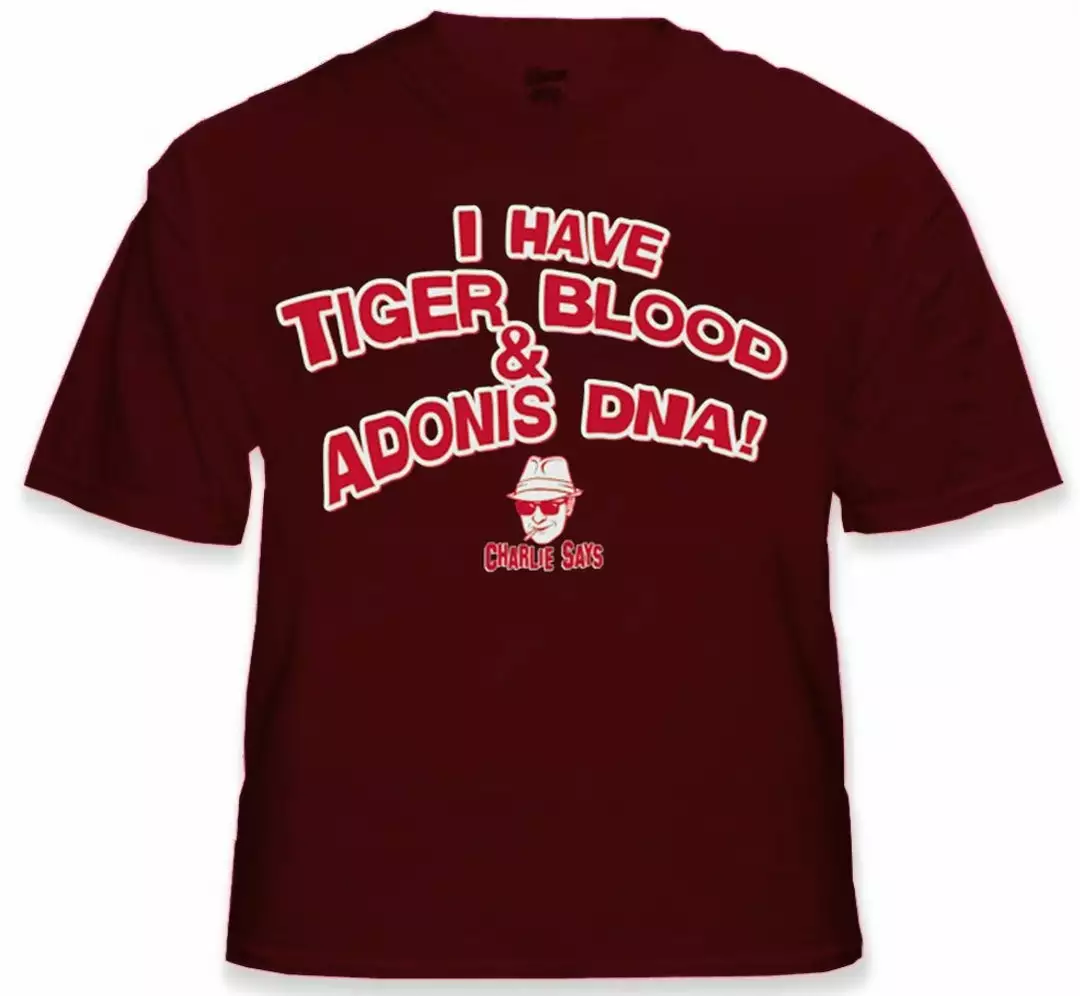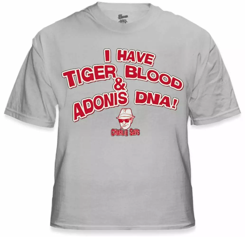Charlie Says T-Shirts – I Have Tiger Blood ! T-Shirt. Since Charlie Sheen’s interview he has become more popular then ever, forget two and a half men. Charlie Sheen quote t-shirts have been in demand. Charlie Sheen has seemingly lost his mind and in celebration of the actor’s insanity we are proud to offer you this line of Cracked out shirts that feature some of Charlie’s most infamous sayings. These shirts will make you an instant party animal… if you can handle it. If you have Tiger Blood running threw your veins click the order button and expieriance Charlie Sheen Today! These shirts may feature popular Charlie Sheen quotes but are in no way affiliated with Charlie Sheen.