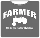 Farmer The Hardest Job T-Shirt. Exclusively from Bewild.com, these new tee’s feature hard-core sayings that say it all. From “Trust Me I’m A Doctor” to “Thats Mr. Asshole To You”. How about a t-shirt that says “I Scored High On My Drug Test” Our short sleeve t-shirts are made from a 100% fully machine washable cotton/poly blend for a cool and comfortable fit every time. On the front of this shirt it says “Farmer. The Hardest Job You’ll Ever Loves!”