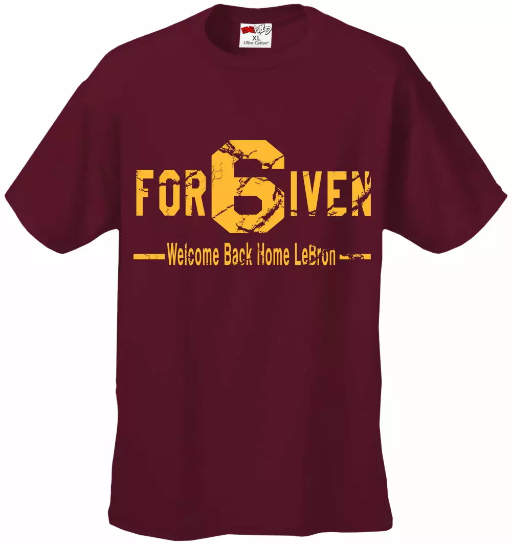 LeBron, you are FORGIVEN! Welcome LeBron back home with this amazing FOR6IVEN T-shirt in the team colors of the Cleveland.