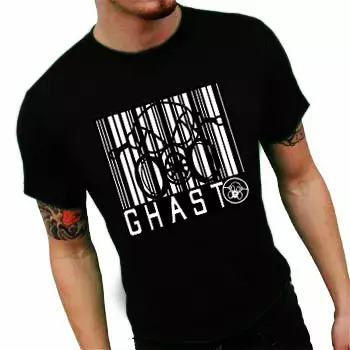 New from ghast is this Ghast Barcode T-Shirt Black. All Ghast t shirts are made of 100% super soft cotton and completly machine washable. This black t-shirt has the Ghast Barcode logo on the front of the shirt as well as the smaller ghast barcode logo on the sleeve.